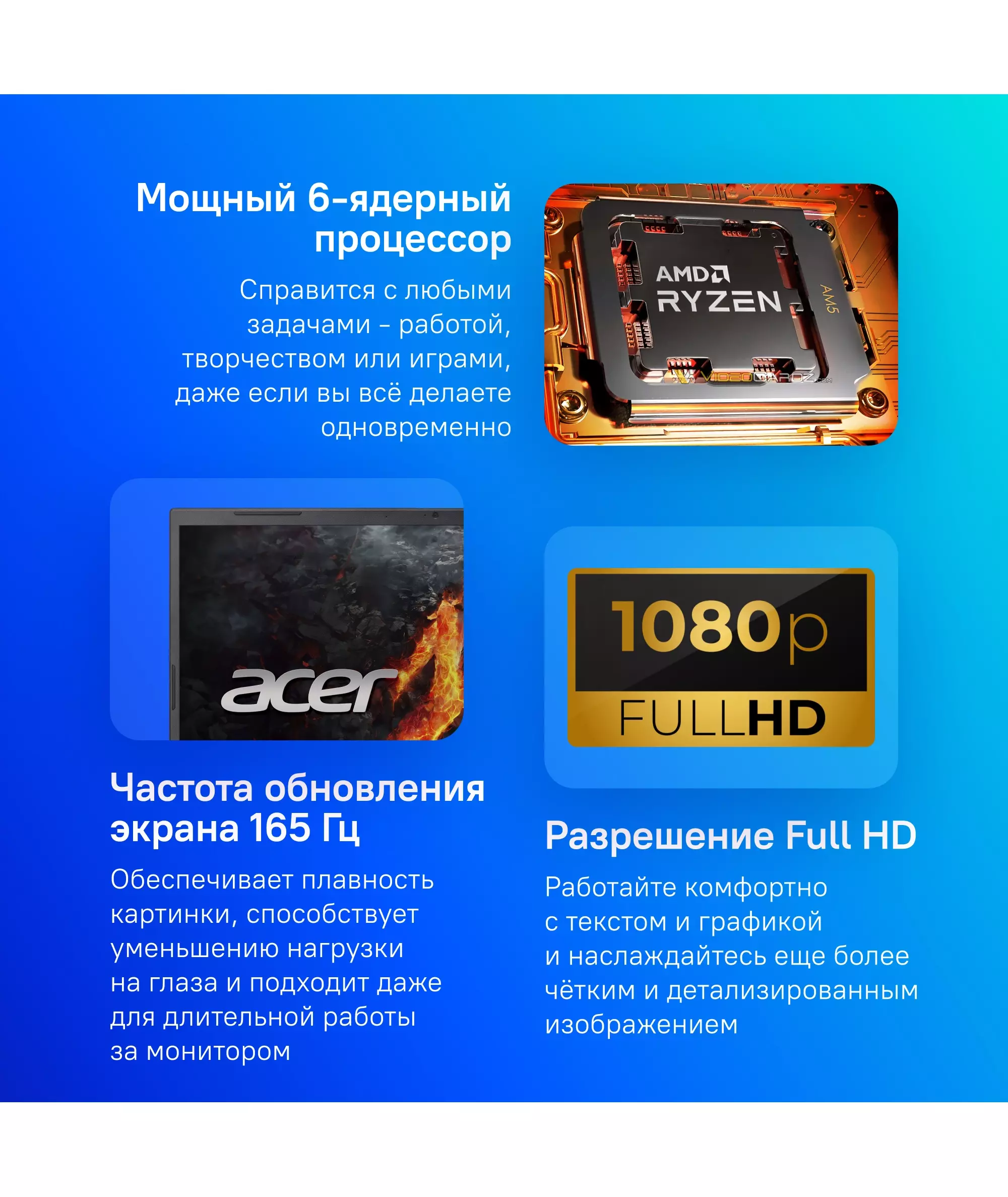 Ноутбук Acer Nitro V 16 ANV16-41-R22R Ryzen 5 8645HS 16Gb SSD512Gb NVIDIA GeForce RTX4050 6Gb 16" IPS WUXGA (1920x1200) без ОС black WiFi BT Cam [NH.QRVCD.003]