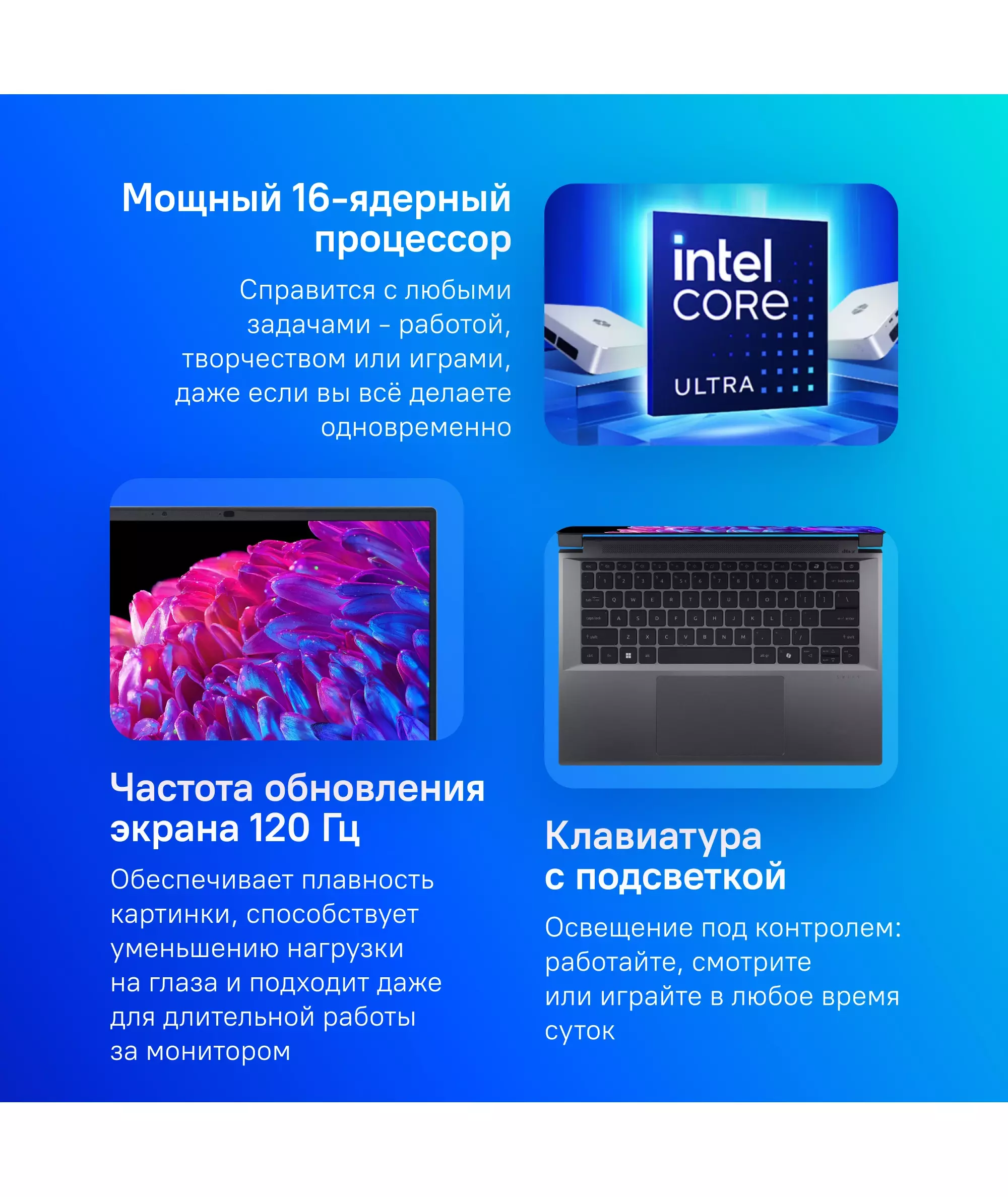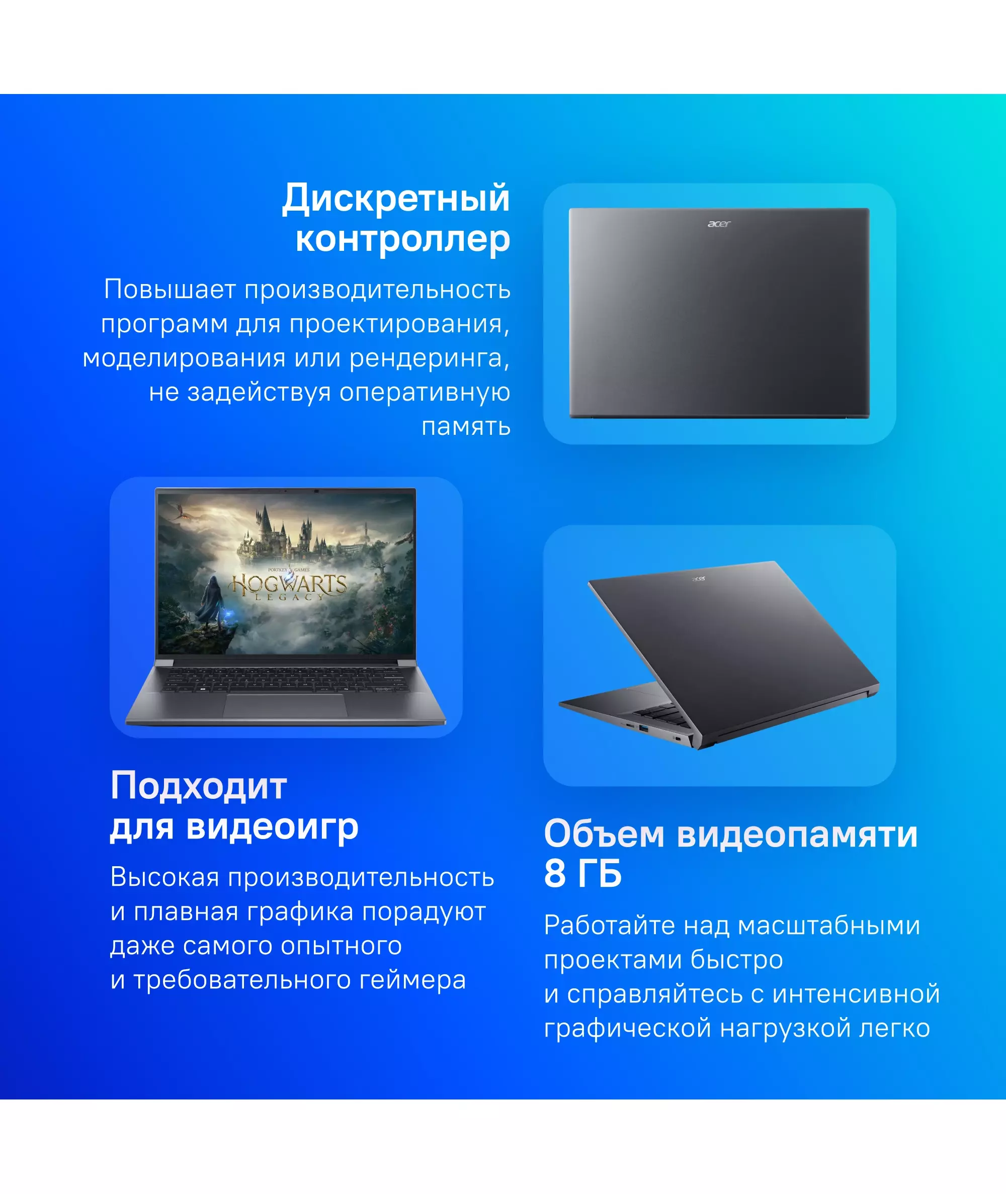 Ноутбук Acer Swift X 14 SFX14-72G-72DH Core Ultra 7 155H 32Gb SSD1Tb NVIDIA GeForce RTX4070 8Gb 14.5" OLED WQXGA+ (2880x1800) Windows 11 metall WiFi BT Cam [NX.KTUCD.001]