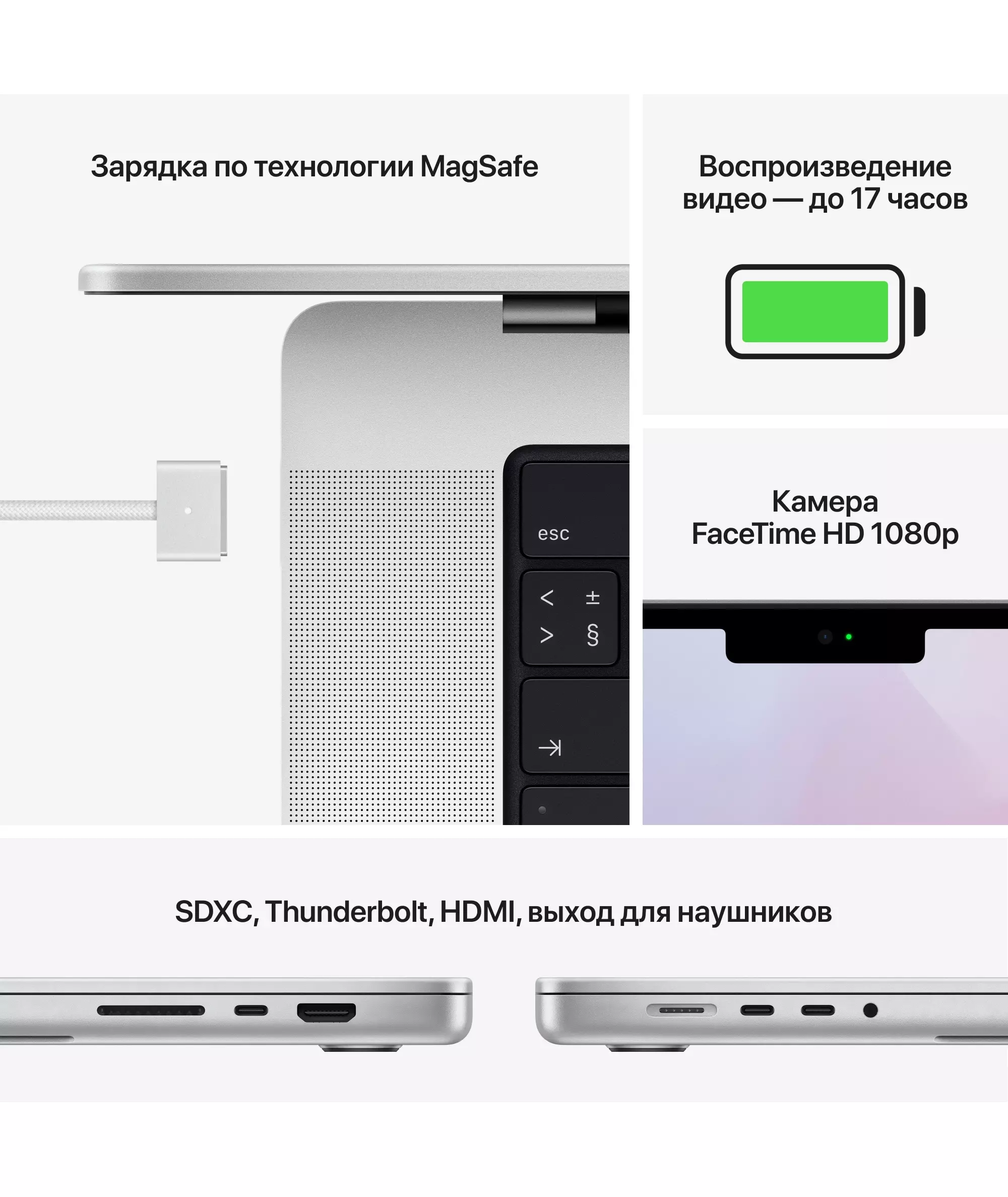 Ноутбук Apple MacBook Pro A2442 M1 Pro 10 core 16Gb SSD1Tb/16 core GPU 14.2" Liquid Retina XDR (3024x1964) macOS silver WiFi BT Cam [MKGT3RU/A]
