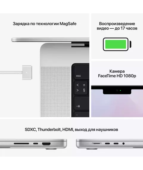 | Дополнительно в комплекте | кабель USB-C/MagSafe 3 (2 м)адаптер питания USB-C |