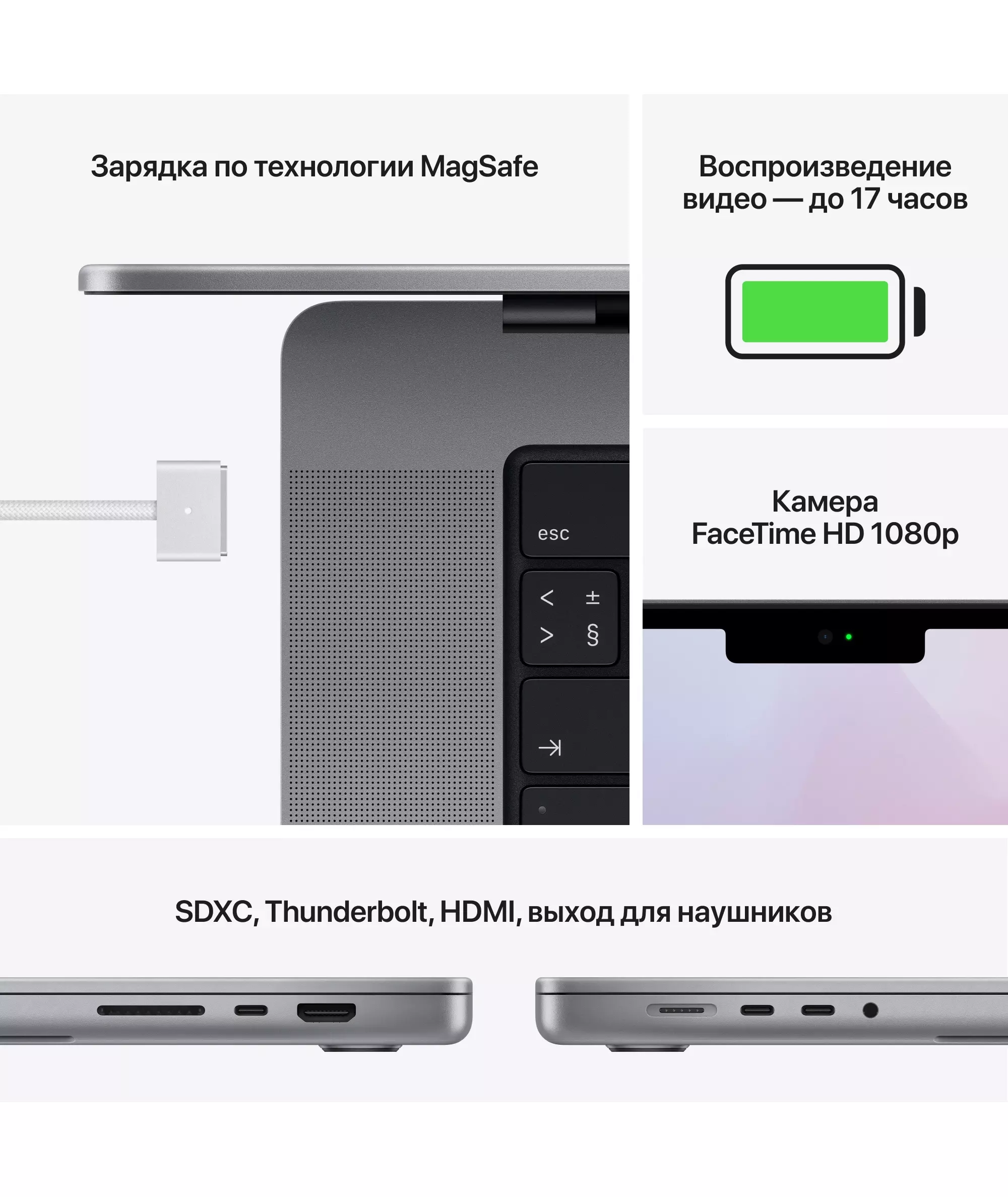 Ноутбук Apple MacBook Pro A2442 M1 Pro 8 core 32Gb SSD512Gb 14 core GPU 14.2" Liquid Retina XDR (3024x1964) macOS grey space WiFi BT Cam [Z15G000CK]