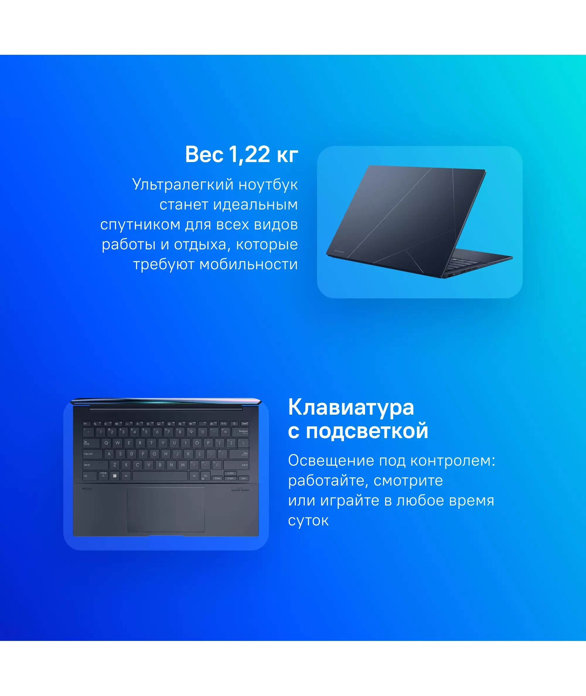 Ноутбук Asus Zenbook 14 OLED UX3405MA-QD986 Core Ultra 5 125H 16Gb SSD512Gb Intel Arc 14" OLED FHD+ (1920x1200) без ОС blue WiFi BT Cam Bag [90NB11R1-M01SL0]