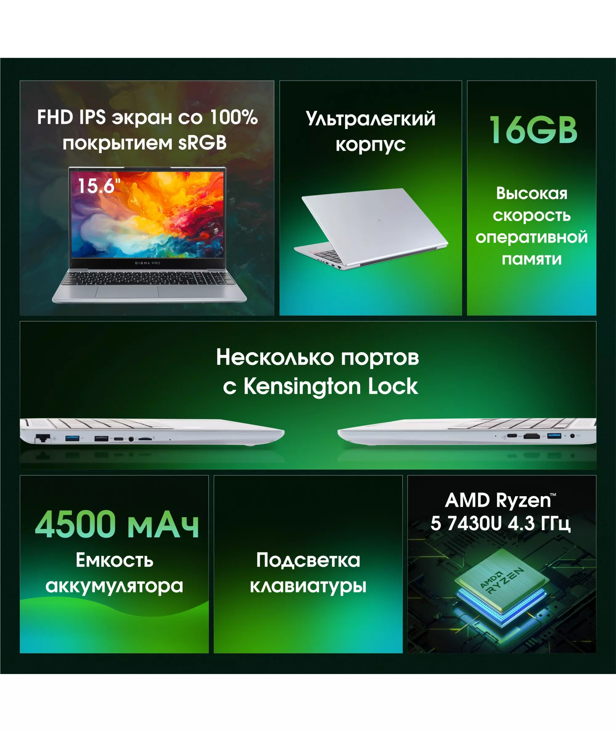 | Процессор | AMD Ryzen 5 7430U 2.3ГГц |