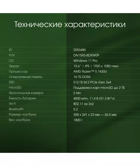 | Операционная система ноутбука | Windows 11 Pro |
