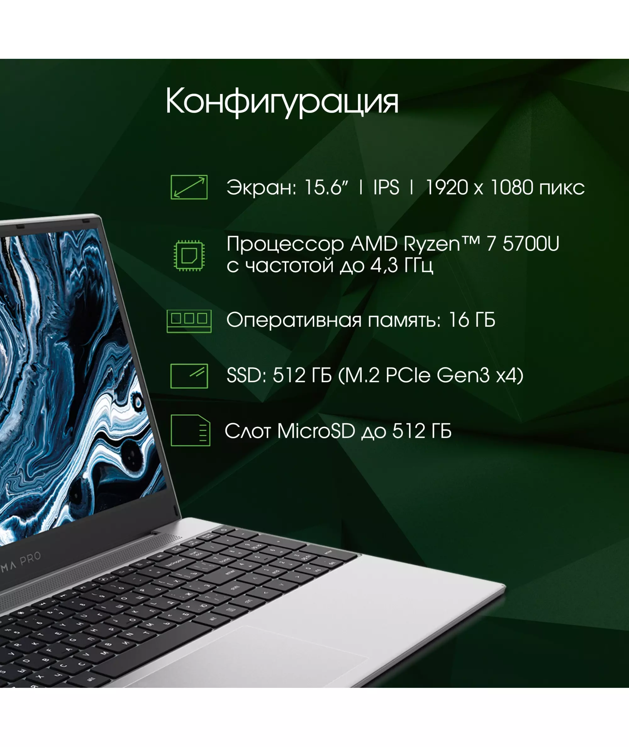 | Процессор | AMD Ryzen 7 5700U 1.8ГГц |