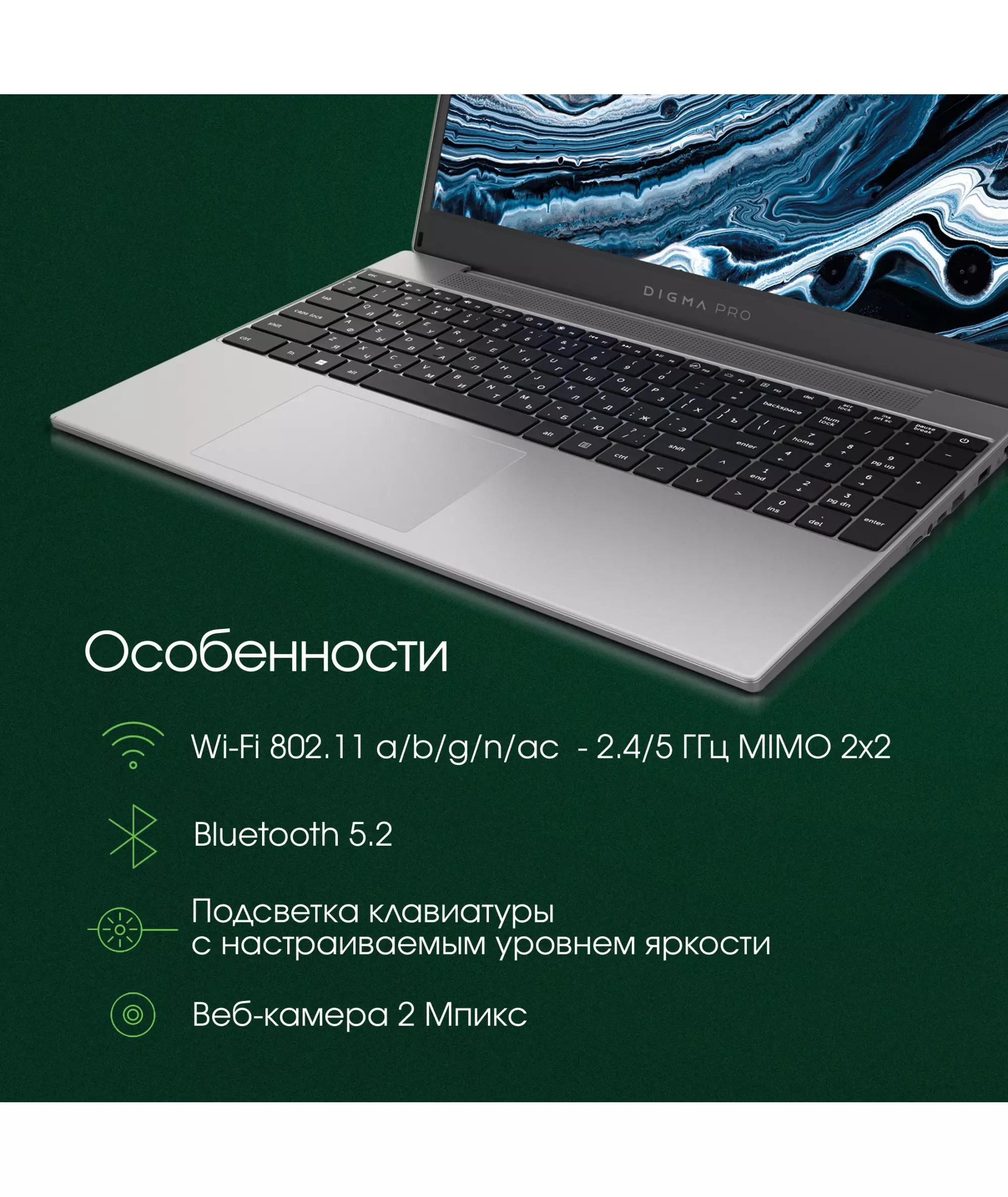 | Разрешение веб-камеры | 2 Мп |