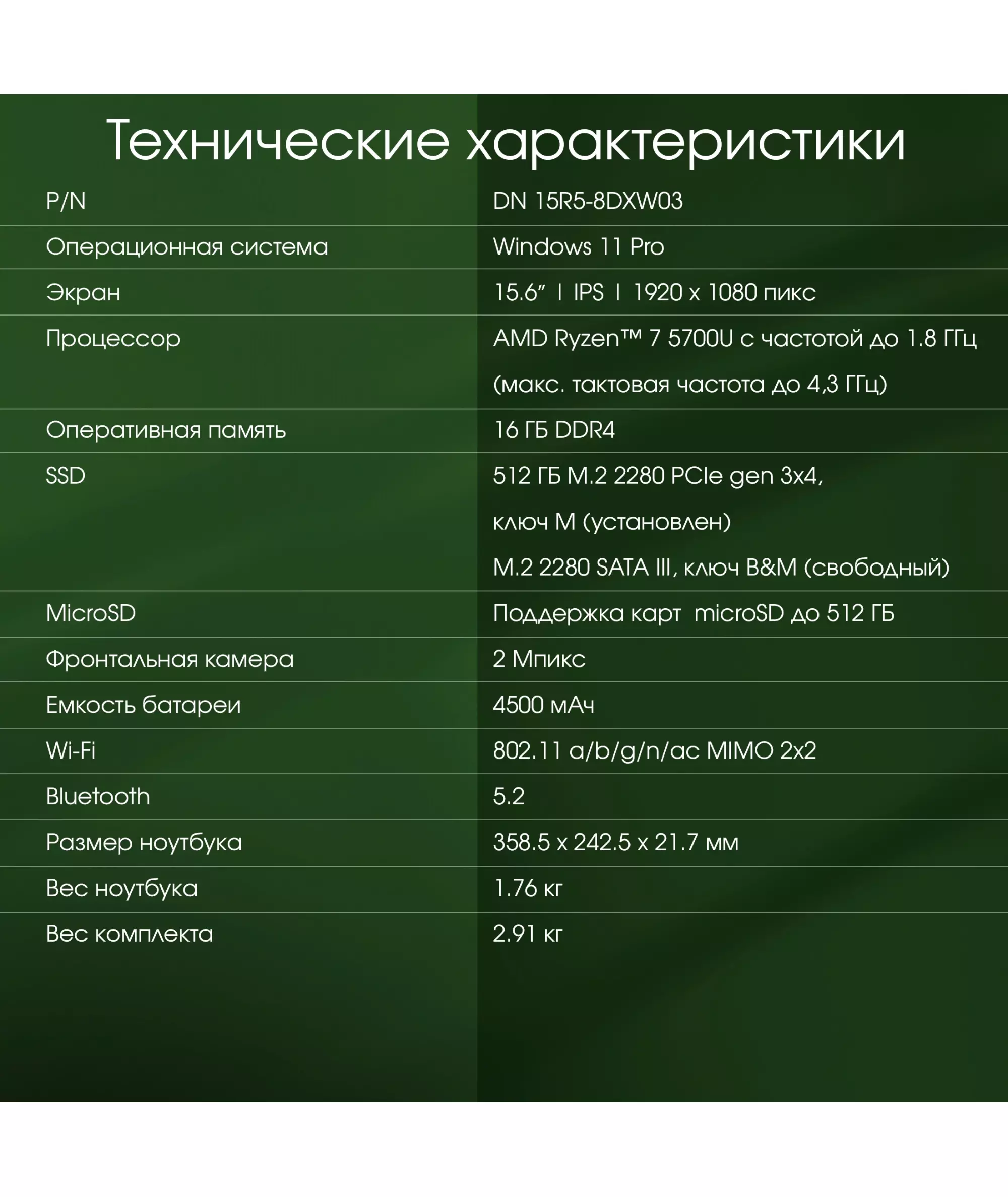 | Операционная система ноутбука | Windows 11 Pro |