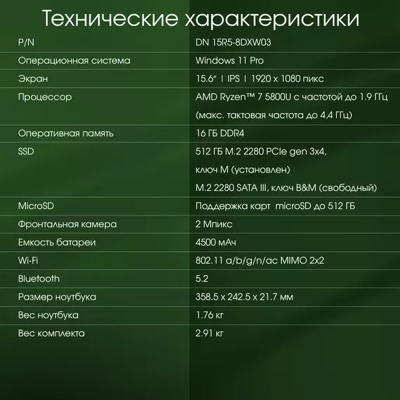 | Процессор | AMD Ryzen 7 5800U 1.9ГГц |
