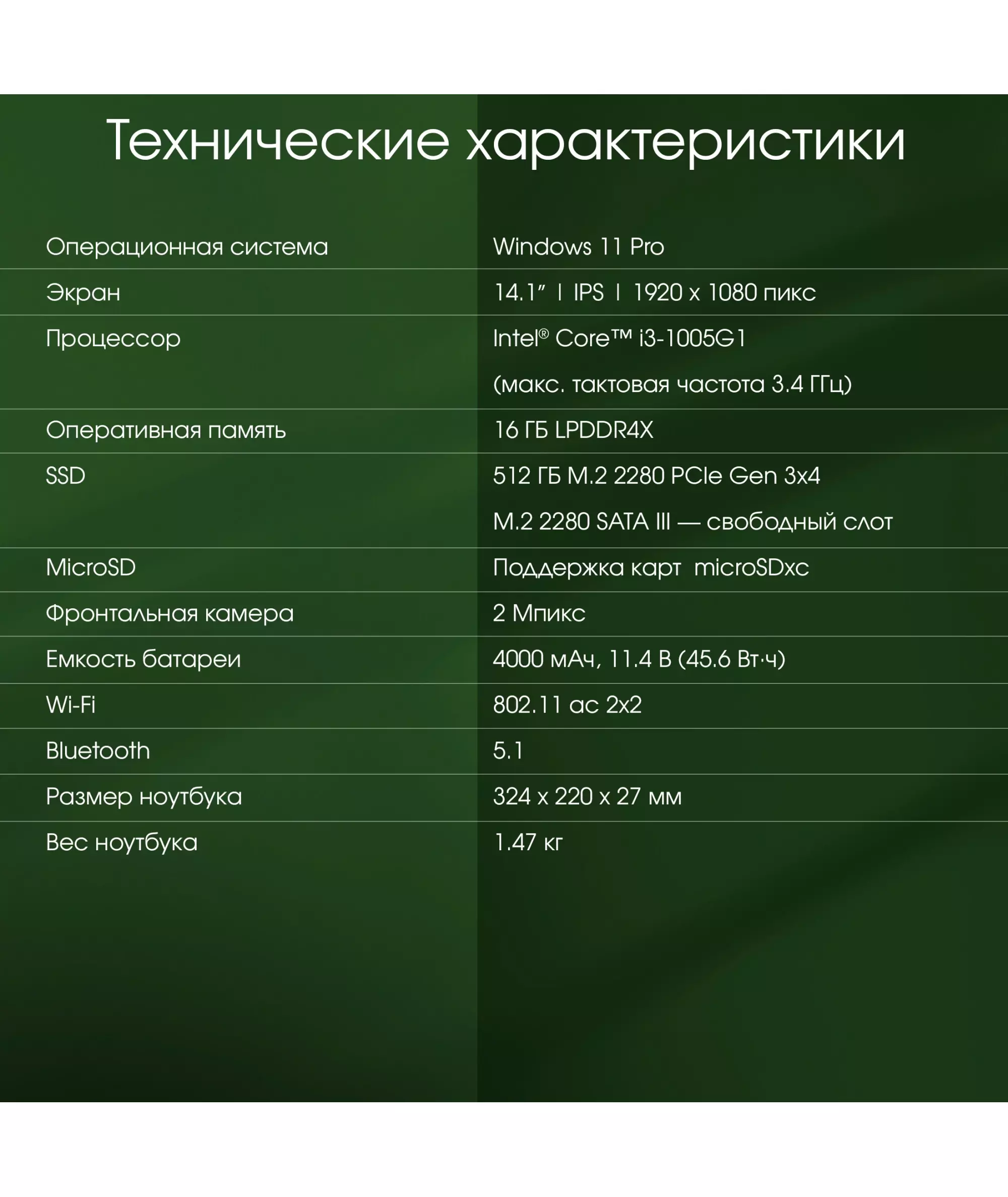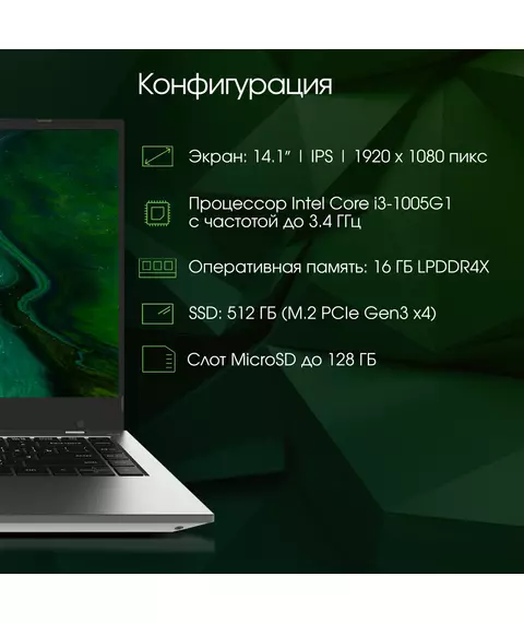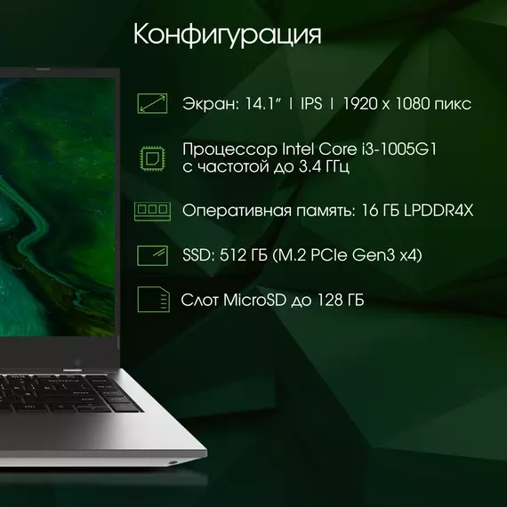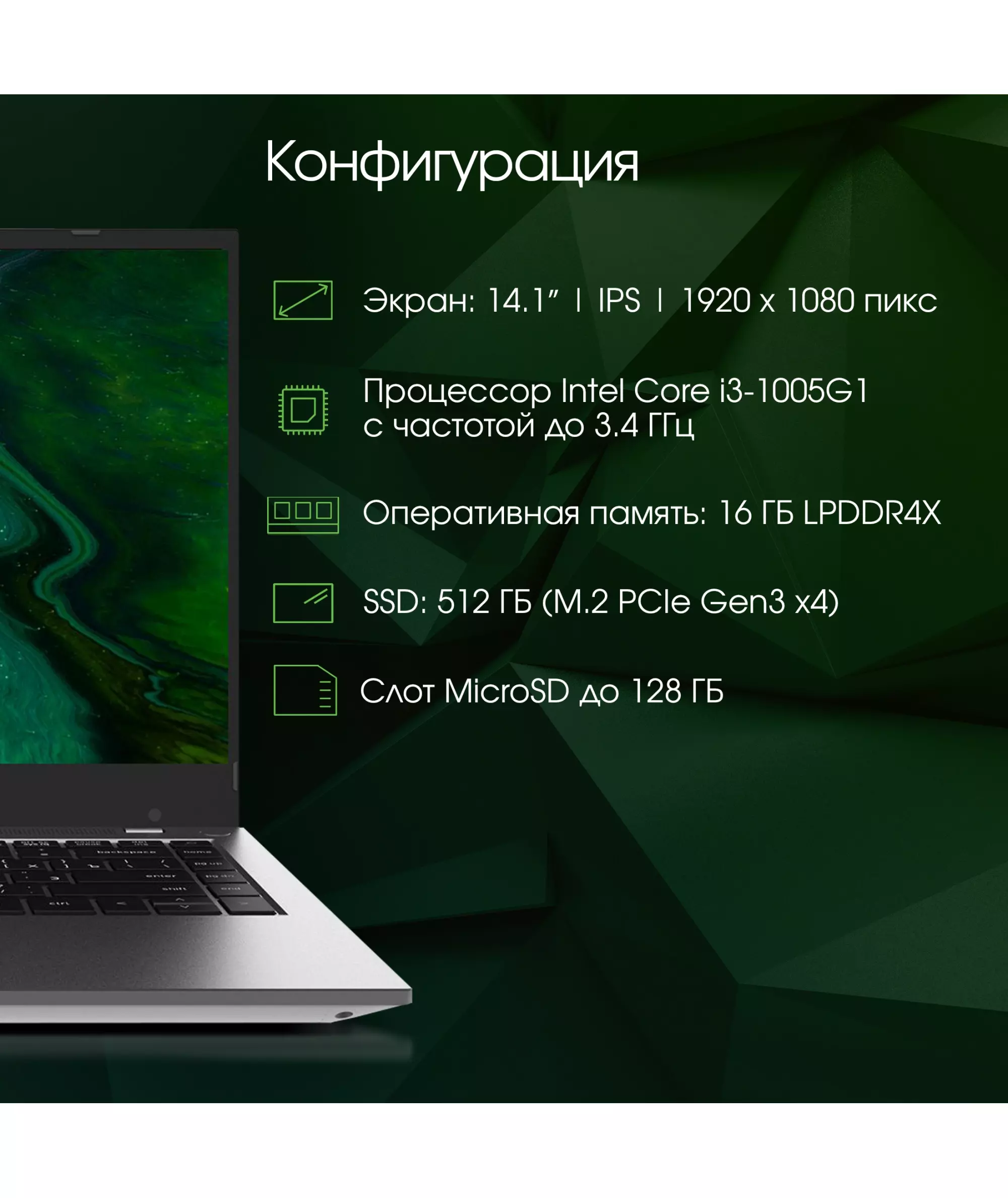 | Процессор | Intel Core i3 1005G1 1.2ГГц |