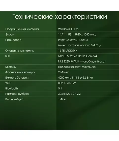 | Оперативная память | 16ГБ LPDDR4x 3733МГц |