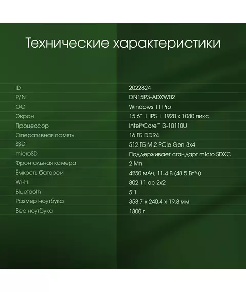 | Процессор | Intel Core i3 10110U 2.1ГГц |
