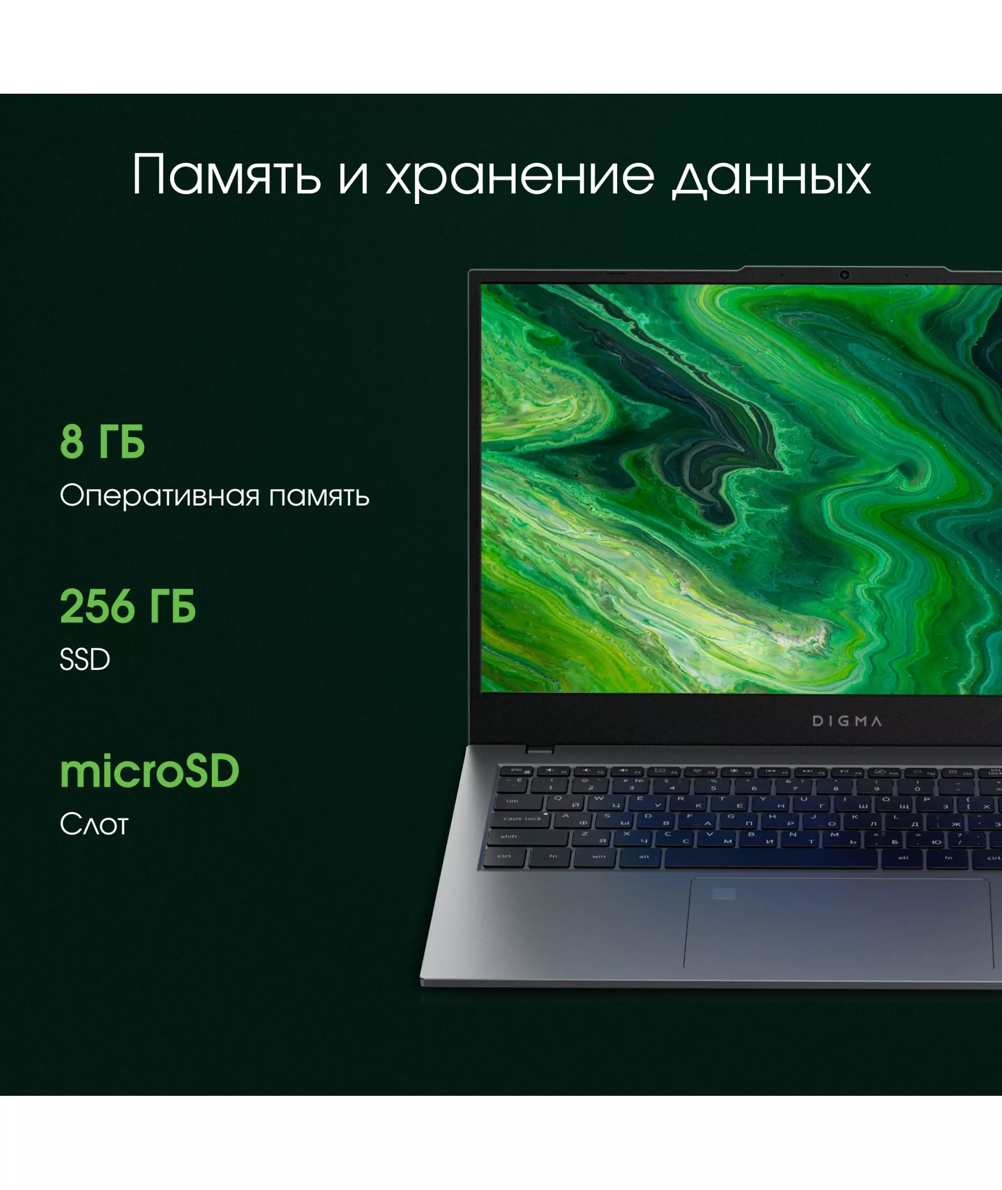 Ноутбук Digma Pro Fortis M Ryzen 5 7430U 8Gb SSD256Gb AMD Radeon 15.6" IPS FHD (1920x1080) Windows 11 Professional grey WiFi BT Cam 4250mAh [DN15R5-8CXW04]