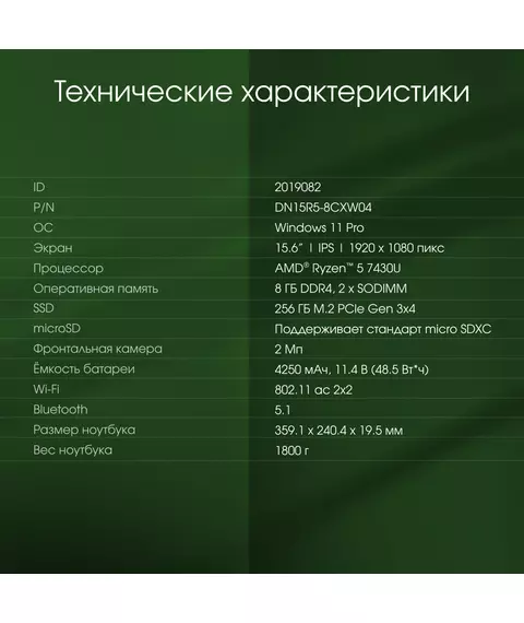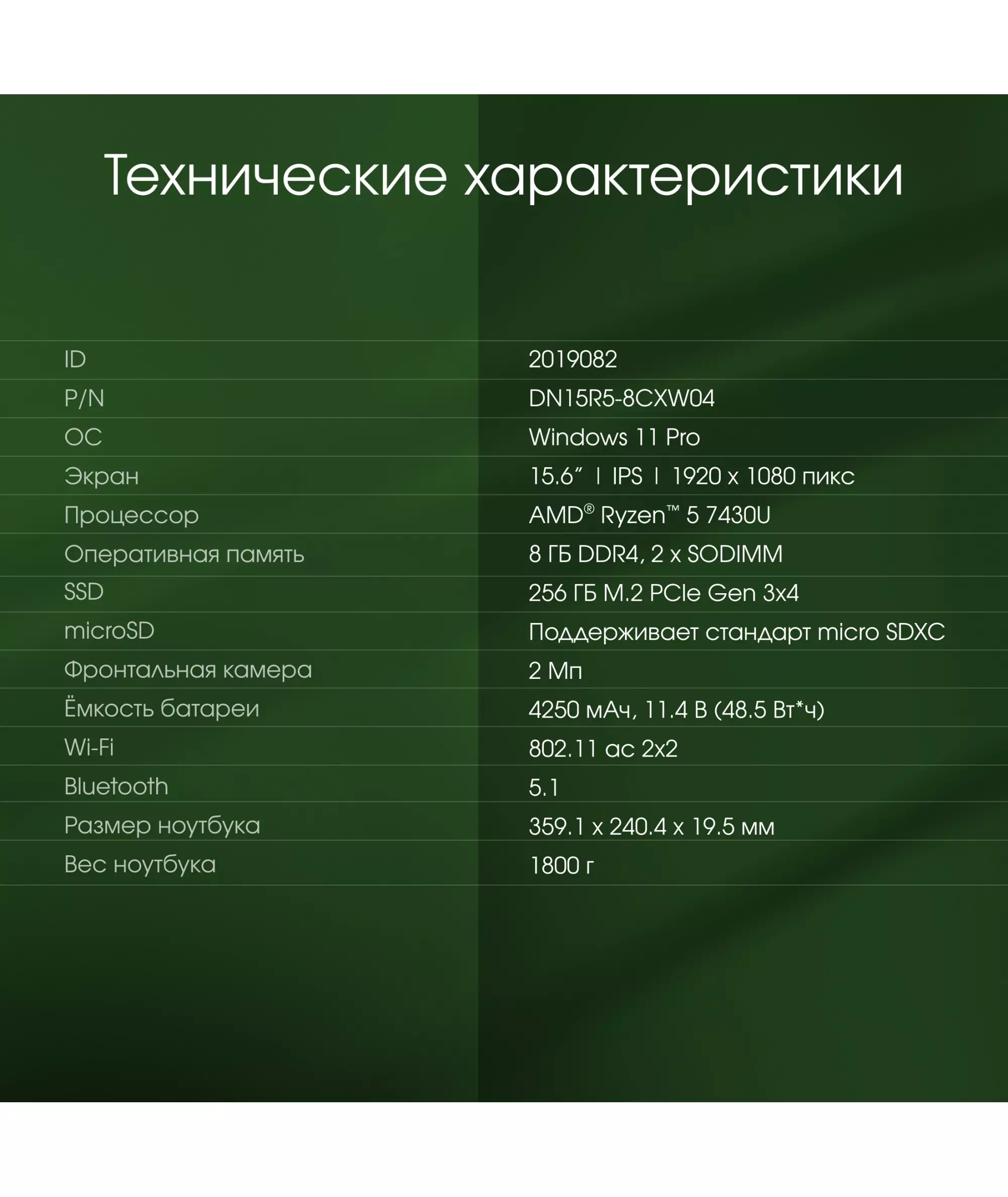 | Процессор | AMD Ryzen 5 7430U 2.3ГГц |