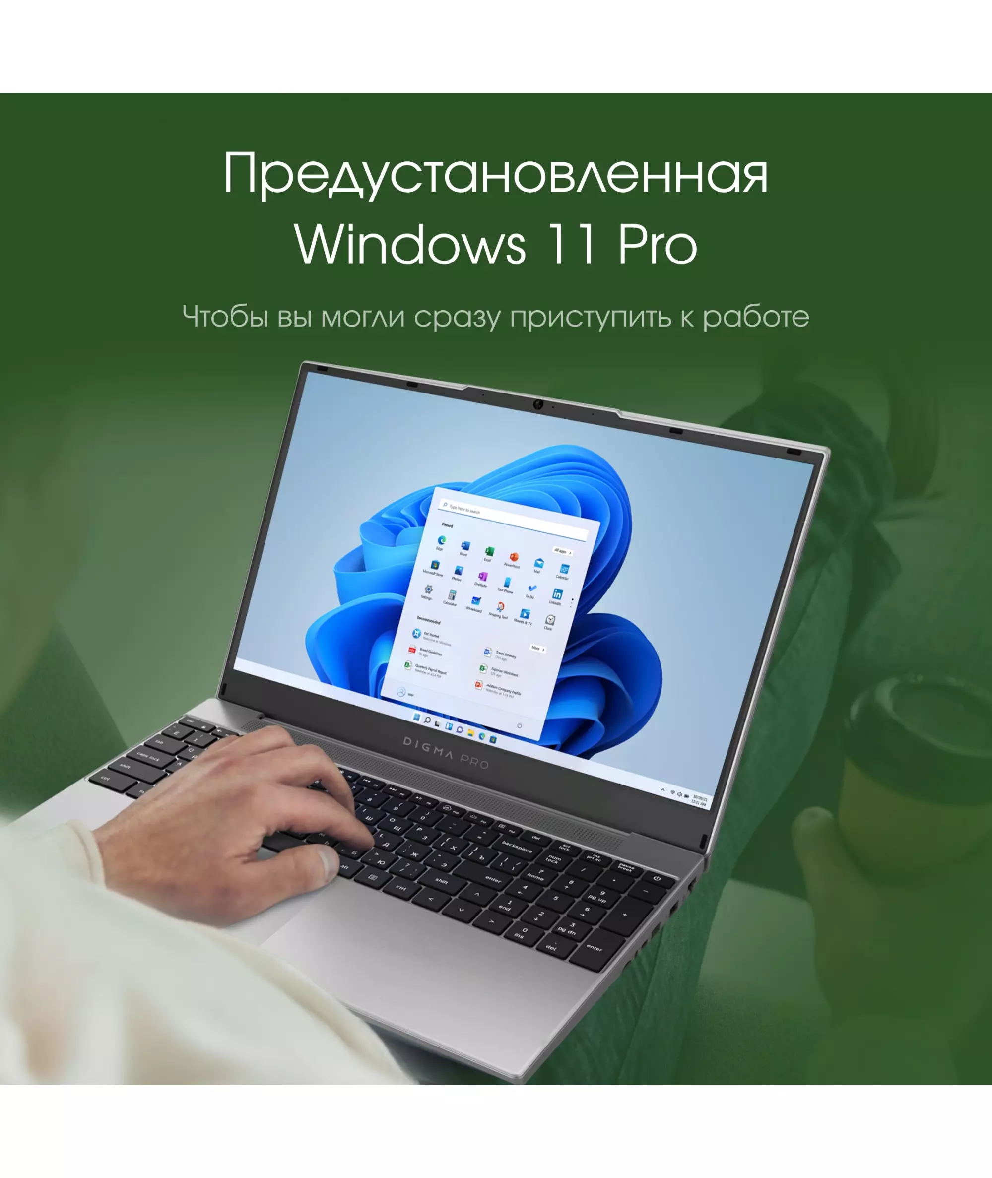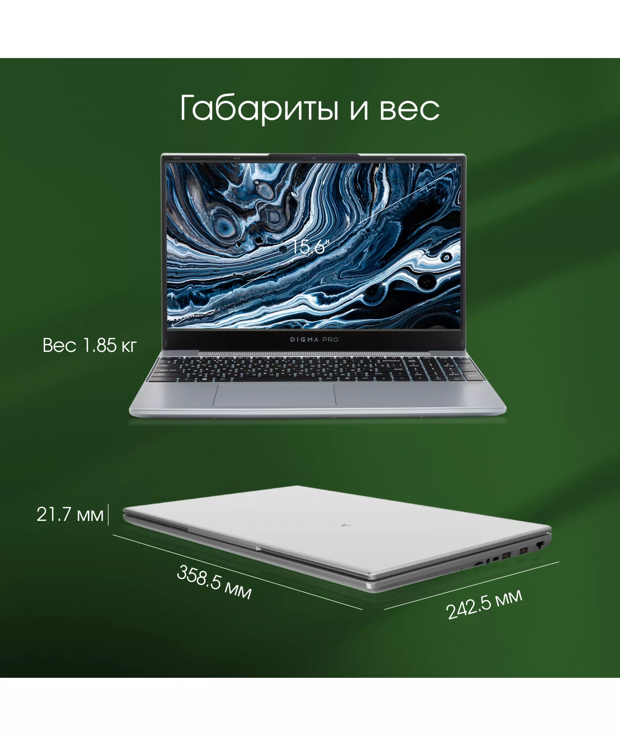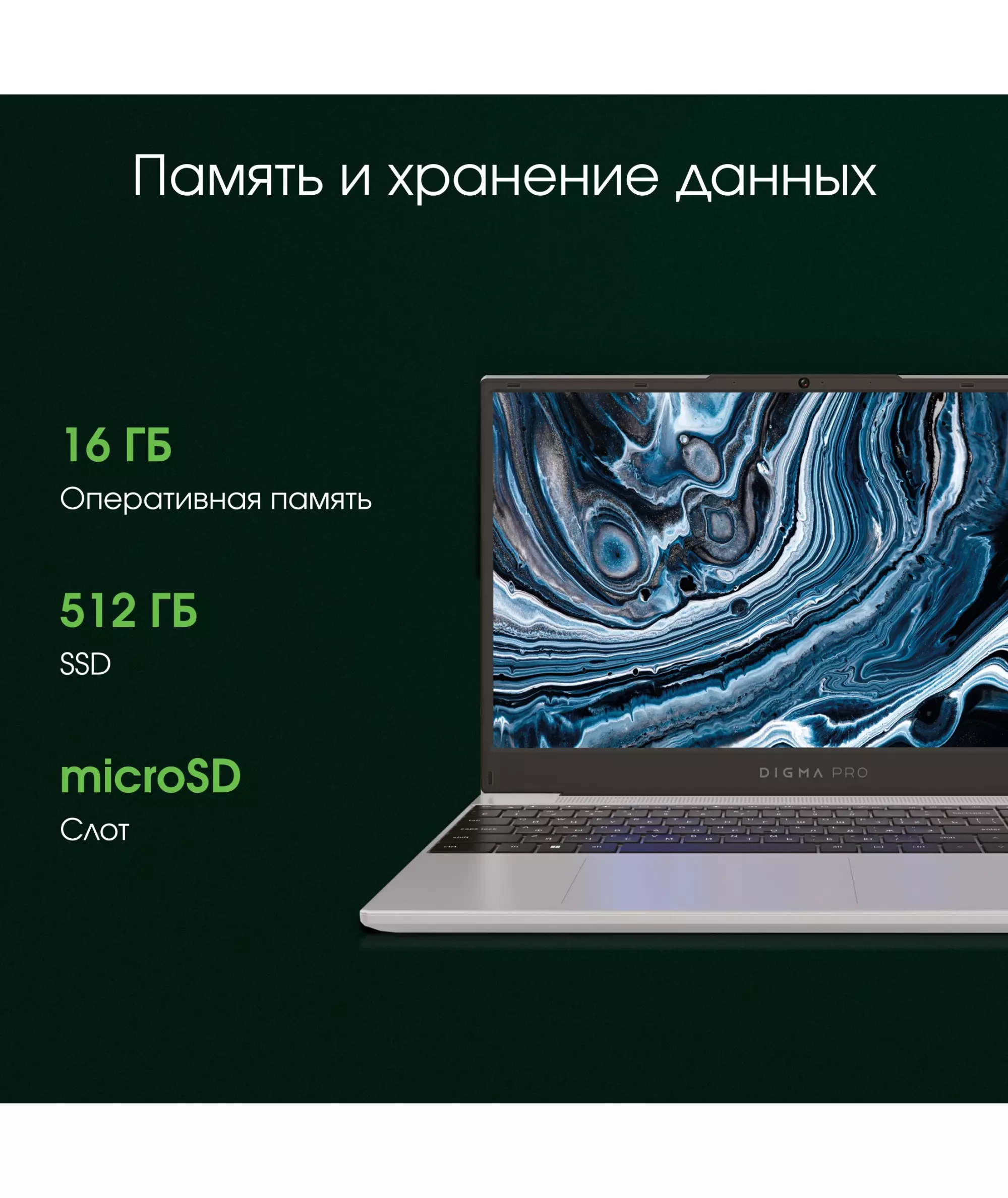 Ноутбук Digma Pro Pro Breve Ryzen 7 7730U 16Gb SSD512Gb AMD Radeon Graphics 15.6" IPS FHD (1920x1080) Windows 11 Pro silver WiFi BT Cam 4500mAh [DN15R7-ADXW05]