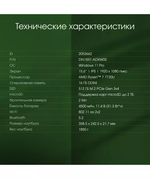| Процессор | AMD Ryzen 7 7730U 2 |