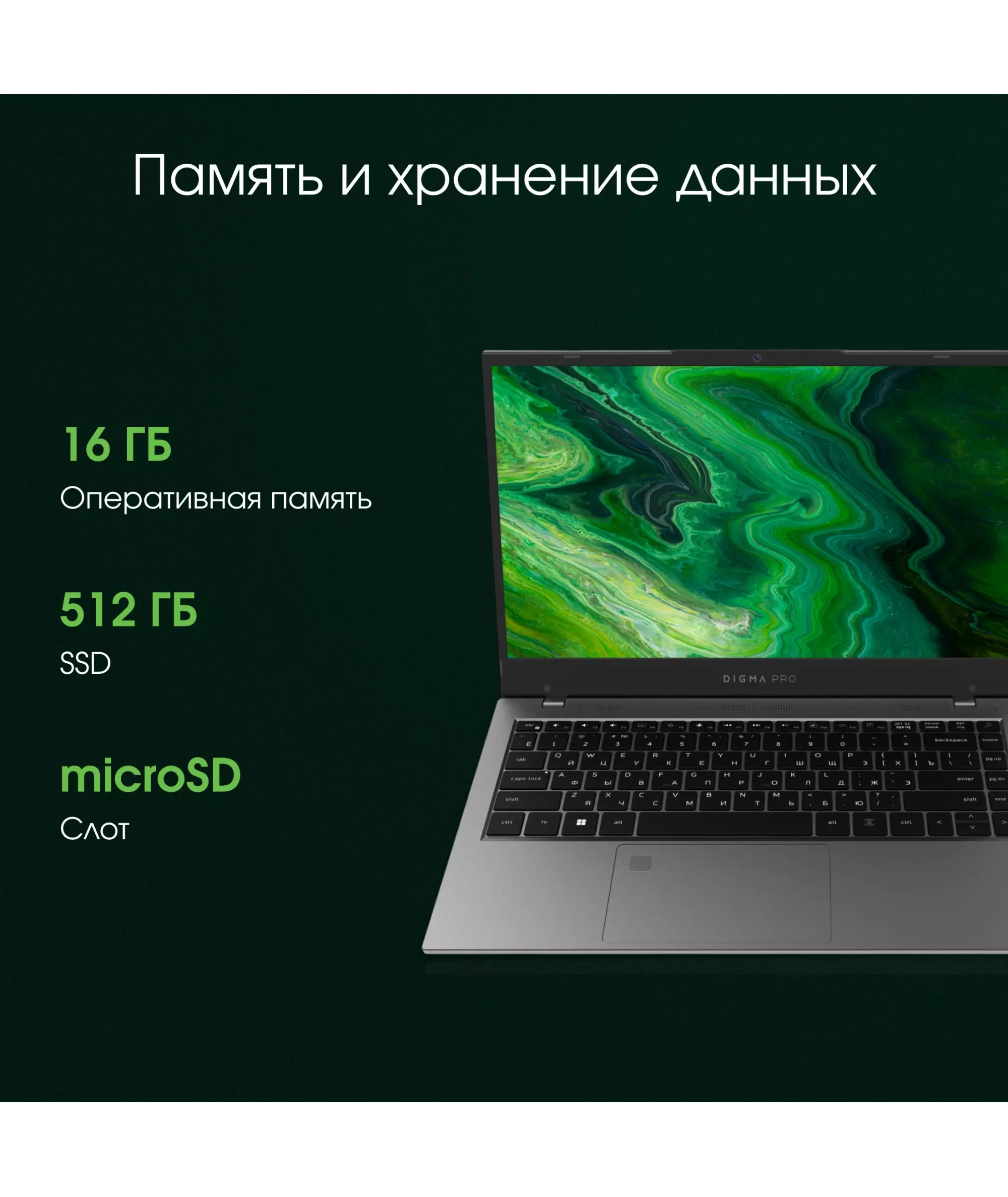 Ноутбук Digma Pro Pro Fortis M Core i5 1235U 16Gb SSD512Gb Intel Iris Xe graphics 14.1" IPS FHD (1920x1080) Windows 11 Pro grey WiFi BT Cam 4000mAh RTL [DN14P5-ADXW03]
