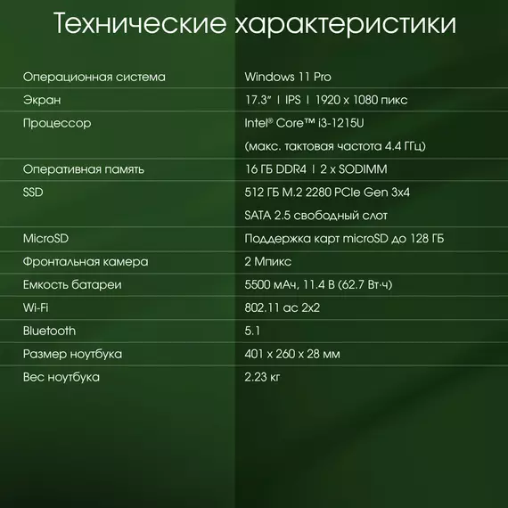 | Операционная система ноутбука | Windows 11 Pro |