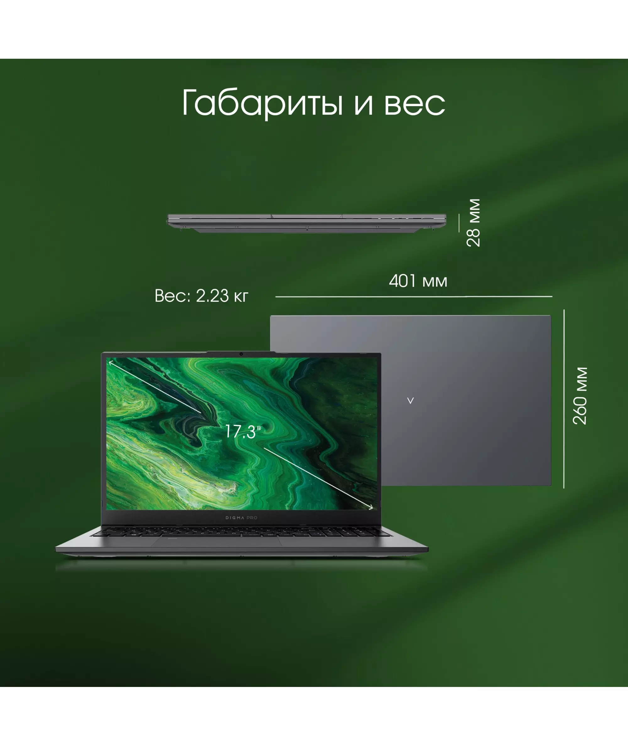Ноутбук Digma Pro Pro Fortis M Core i5 1235U 16Gb SSD512Gb Intel Iris Xe graphics 17.3" IPS FHD (1920x1080) Windows 11 Pro grey WiFi BT Cam 5500mAh RTL [DN17P5-ADXW01]