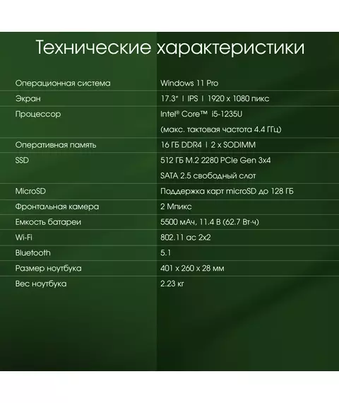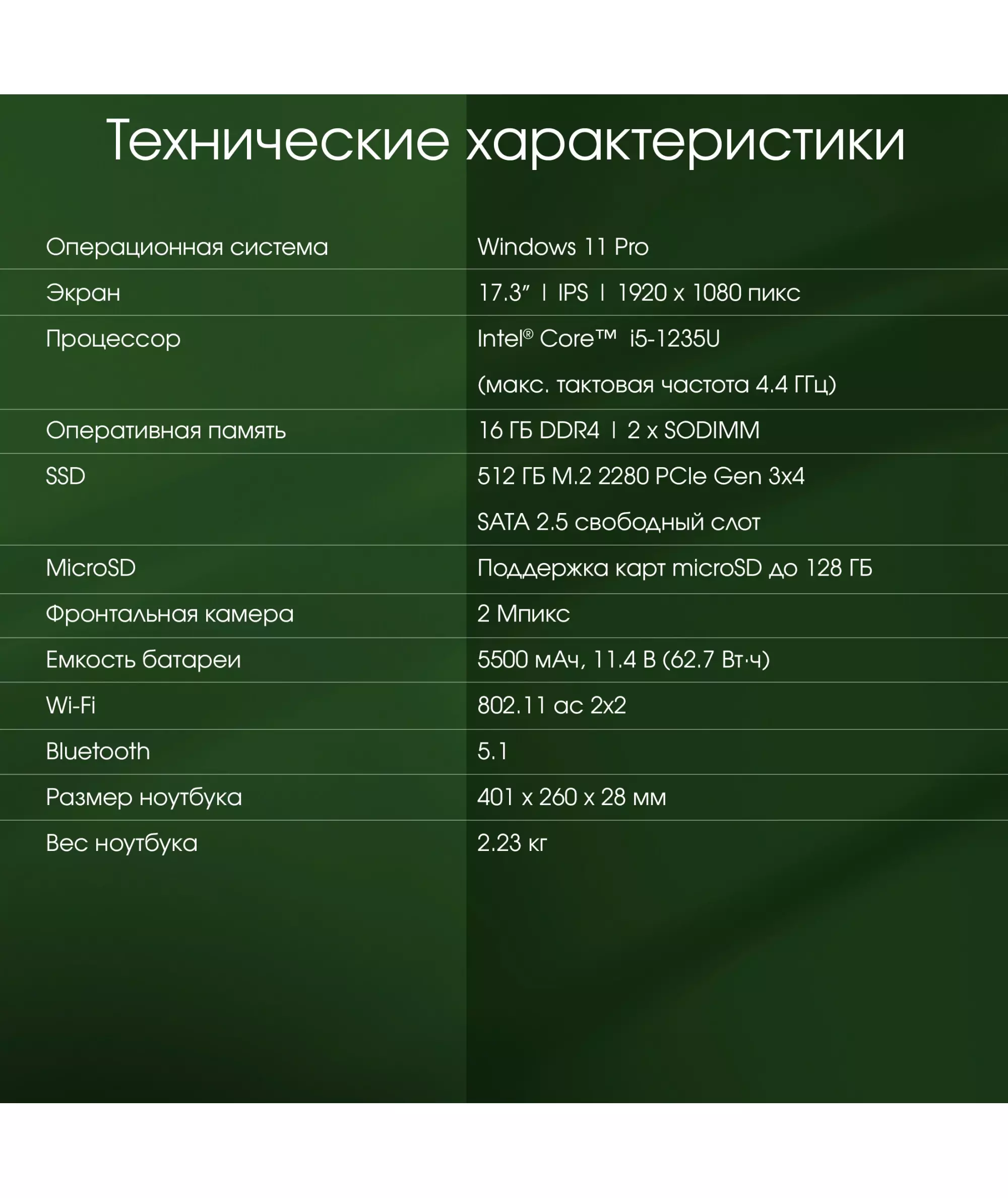 | Процессор | Intel Core i5 1235U 1.3ГГц |