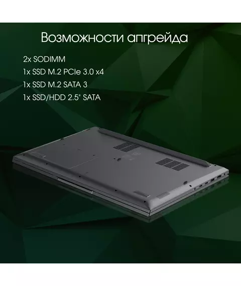 2x SODIMM; SSD m.2 PCIe 3.0 x4 (используется); SATA 2.5" (свободный)