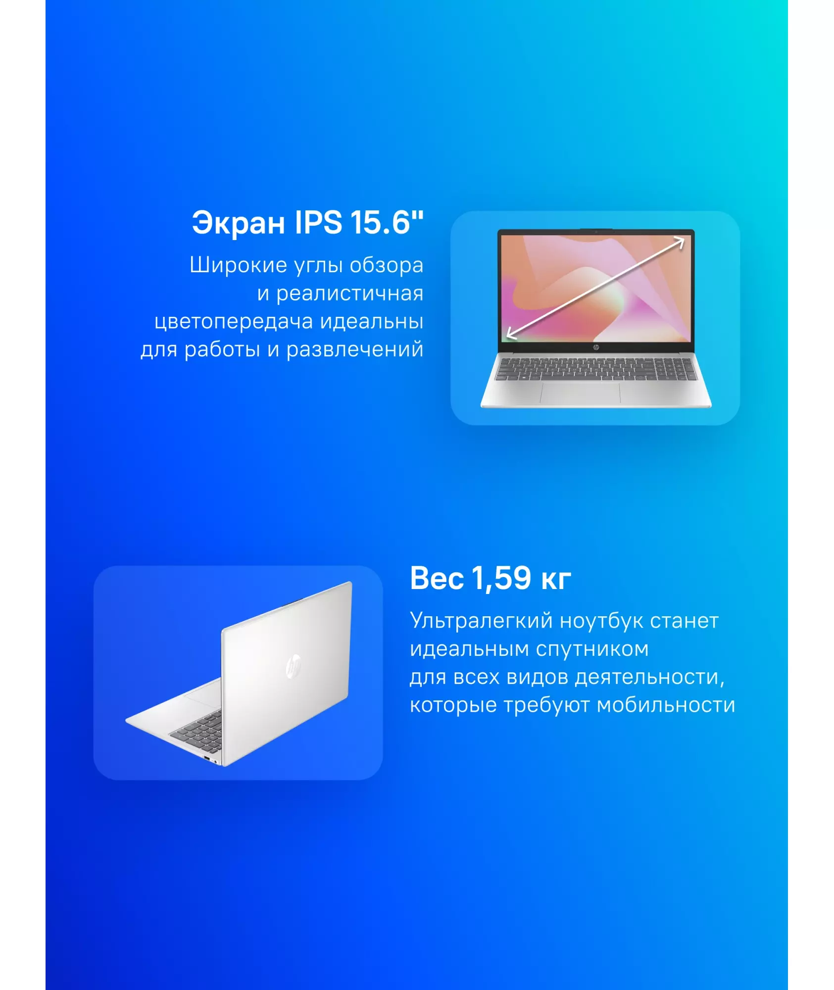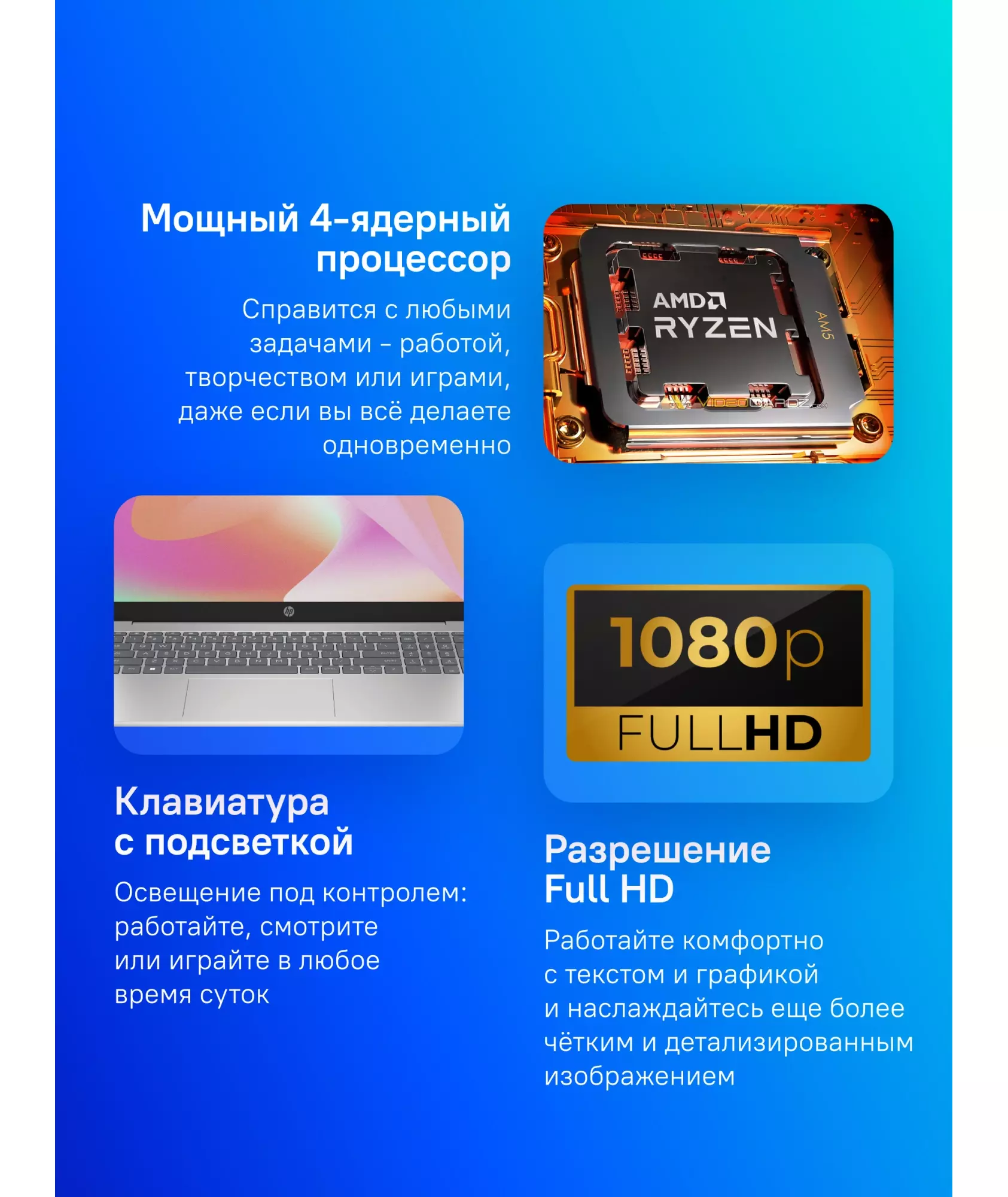 Ноутбук HP 15-fc0018nq Ryzen 5 7520U 16Gb SSD512Gb AMD Radeon 610M 15.6" IPS FHD (1920x1080) FreeDOS silver WiFi BT Cam [7K0R1EA]