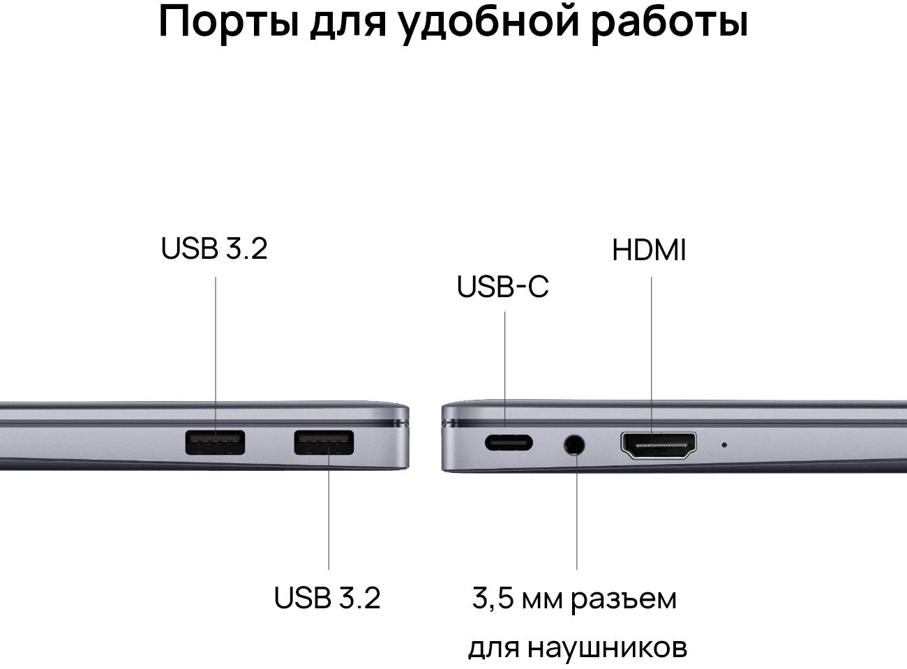 Ноутбук Huawei MateBook 14 KLVG-X Core i5 1340P 16Gb SSD512Gb Intel Iris Xe graphics 14" IPS 2K (2160x1440) Windows 11 Home grey space WiFi BT Cam [53013YGL]