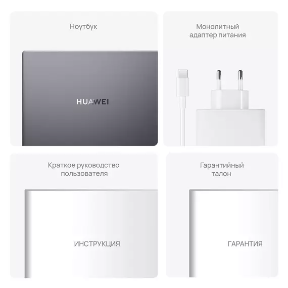 Ноутбук Huawei MateBook D 14 Core i5 12450H 16Gb SSD512Gb Intel UHD Graphics 14" IPS FHD (1920x1200) без ОС grey space WiFi BT Cam [53013XET]