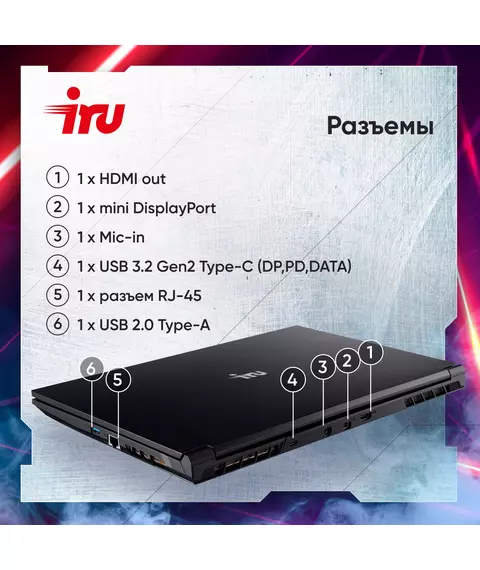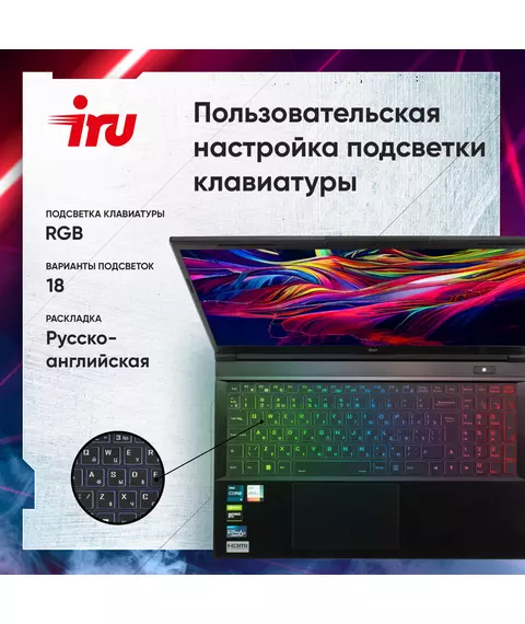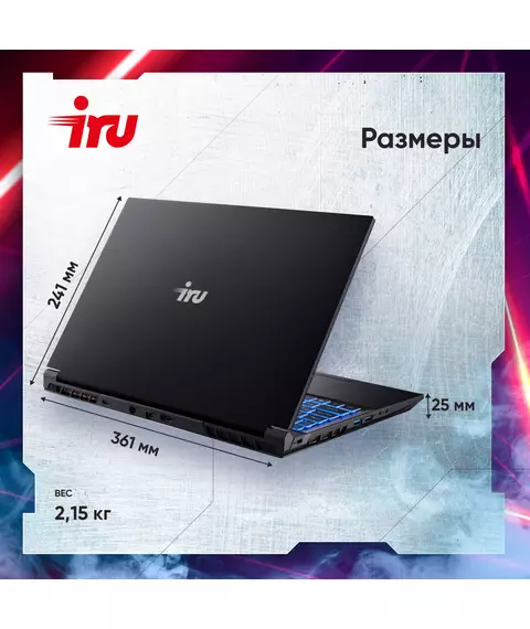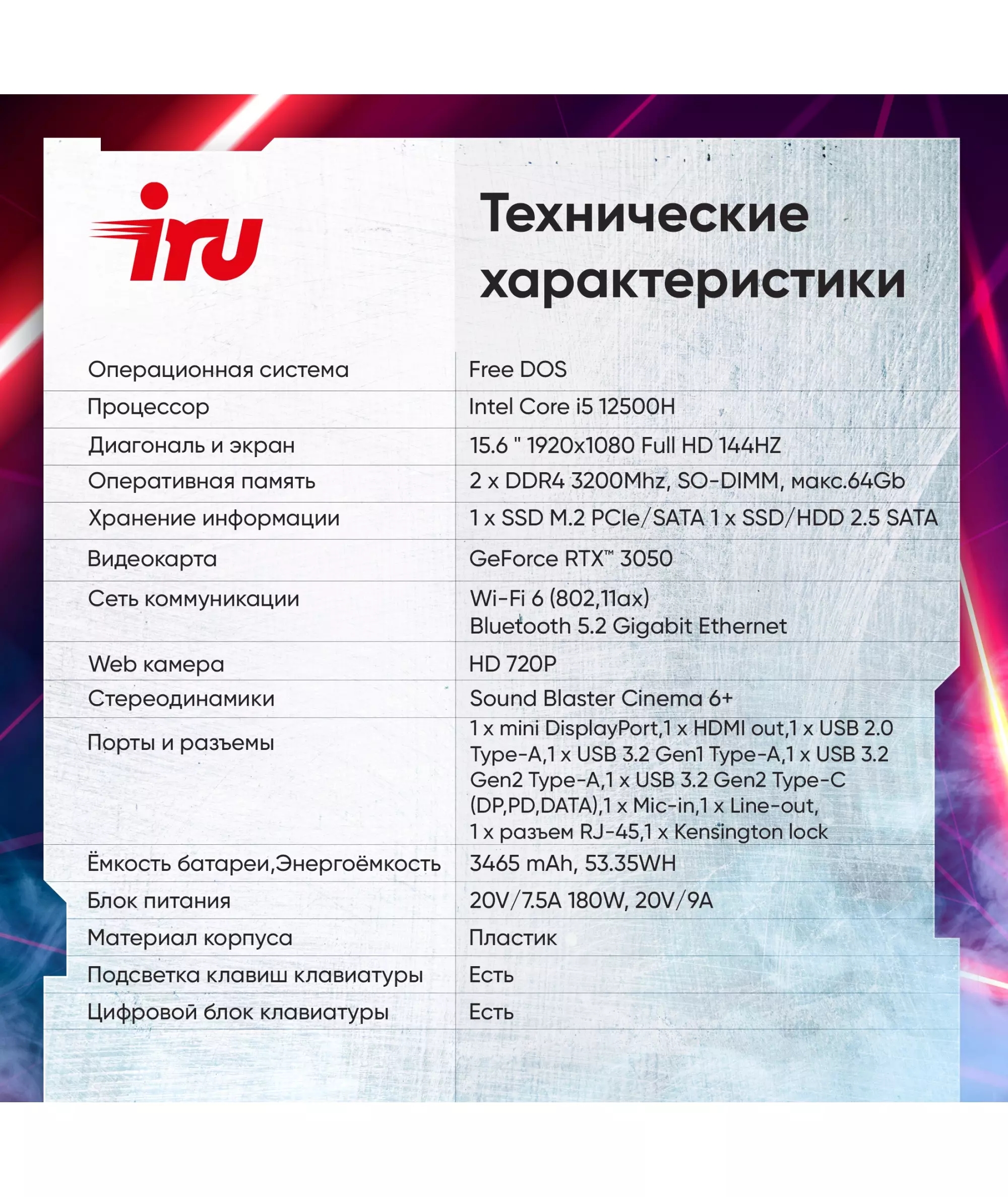 Ноутбук iRU Калибр 15ALC Core i5 12500H 16Gb SSD512Gb NVIDIA GeForce RTX 3050 4Gb 15.6" IPS FHD (1920x1080) без ОС black WiFi BT Cam 3465mAh [1930300]