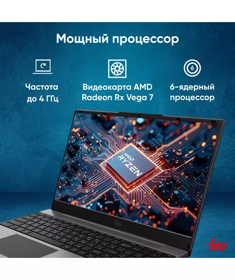 Ноутбук iRU Калибр 15PH Ryzen 5 5500U 8Gb SSD256Gb AMD Radeon Graphics 15.6" IPS FHD (1920x1080) FreeDOS black WiFi BT Cam 4350mAh [2054000]