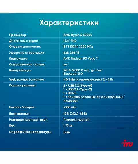 | Процессор | AMD Ryzen 5 5500U 2.1ГГц |