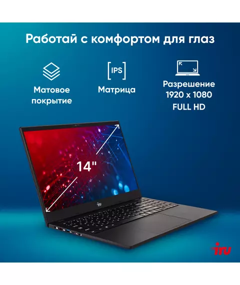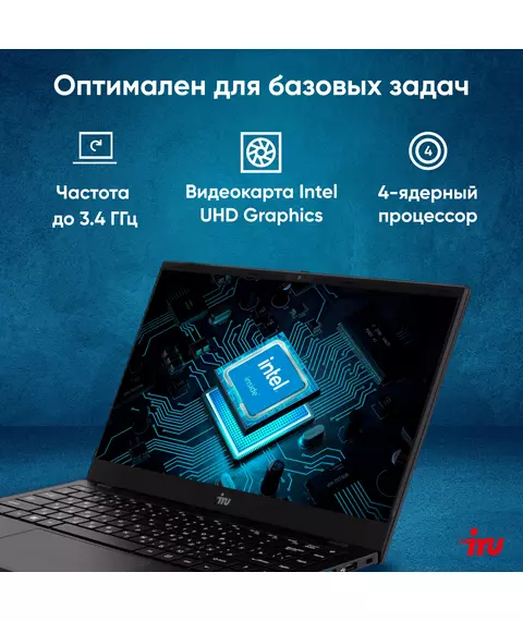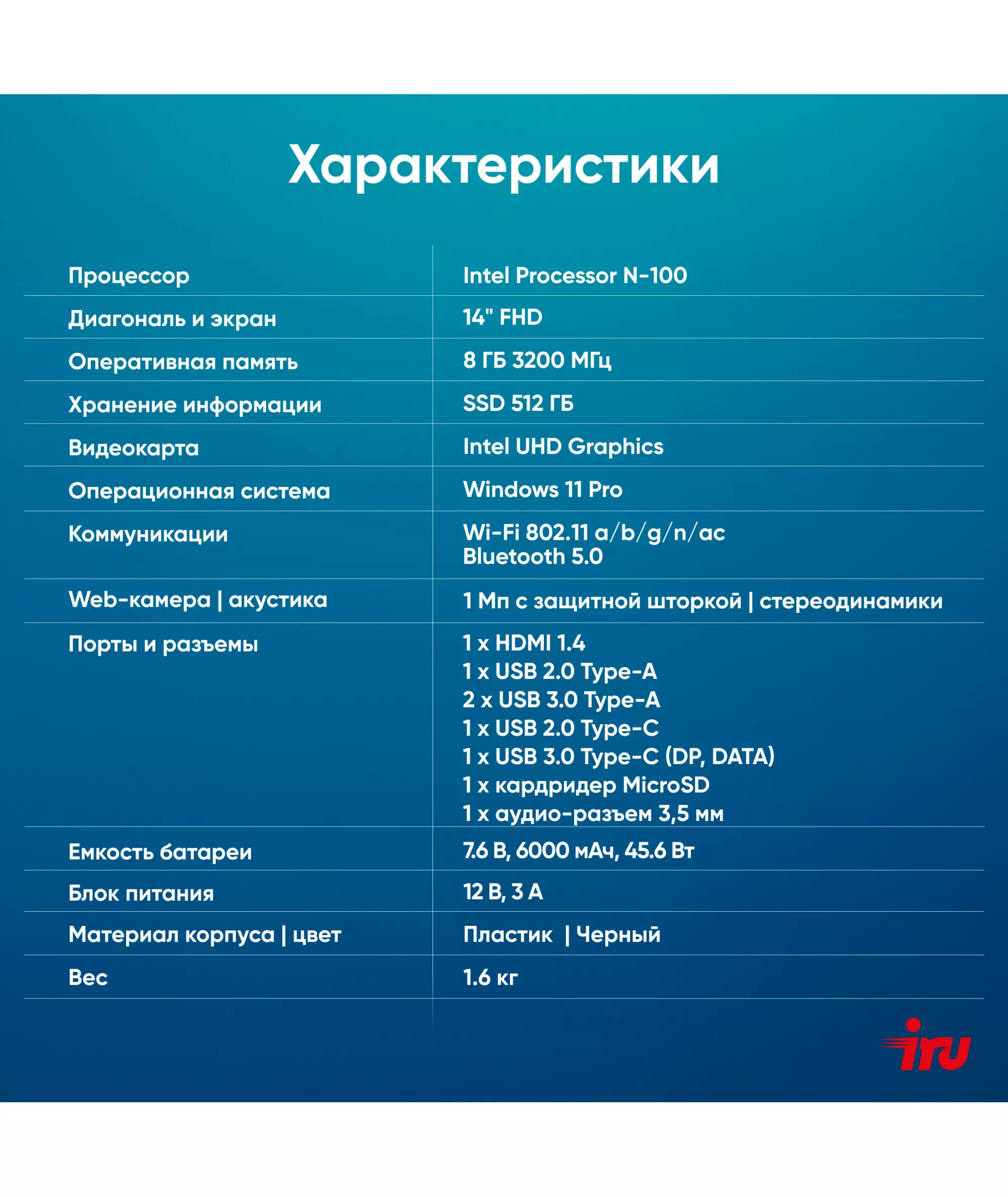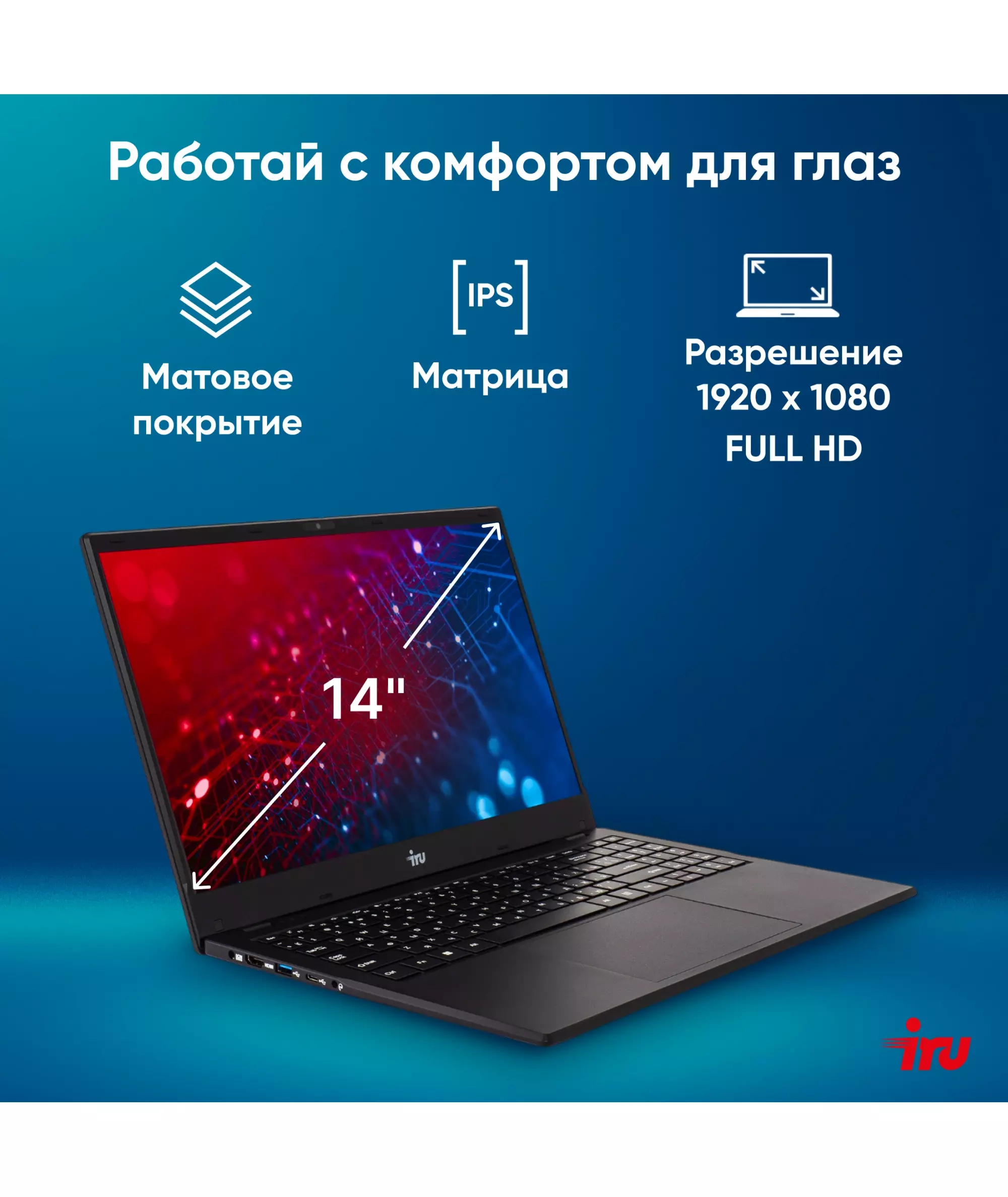 Ноутбук iRU Planio 14ING N-series N100 8Gb SSD512Gb Intel UHD Graphics 14" IPS FHD (1920x1080) Windows 11 Pro 64 black WiFi BT Cam 6000mAh [2059101]