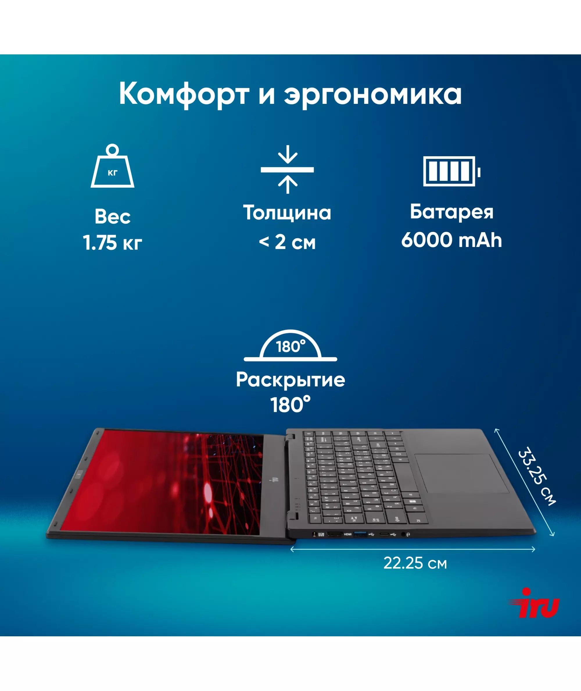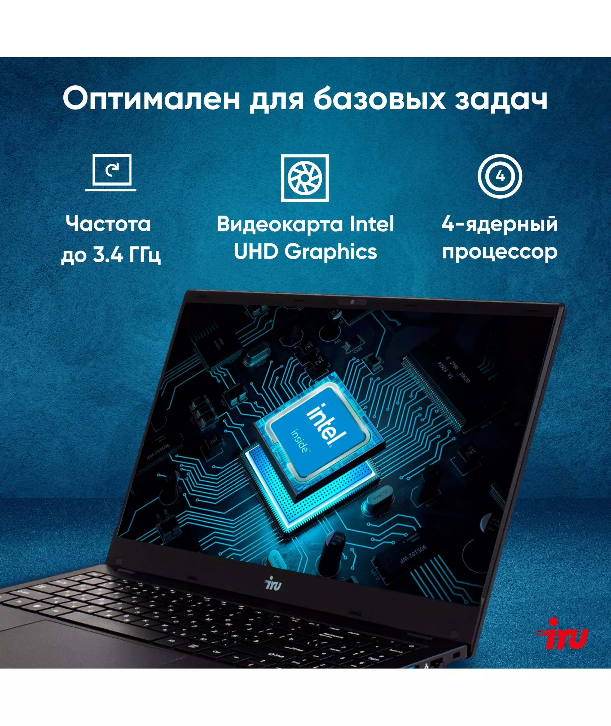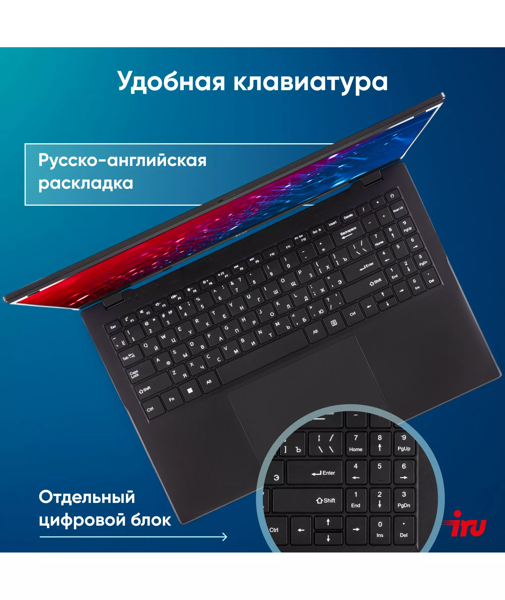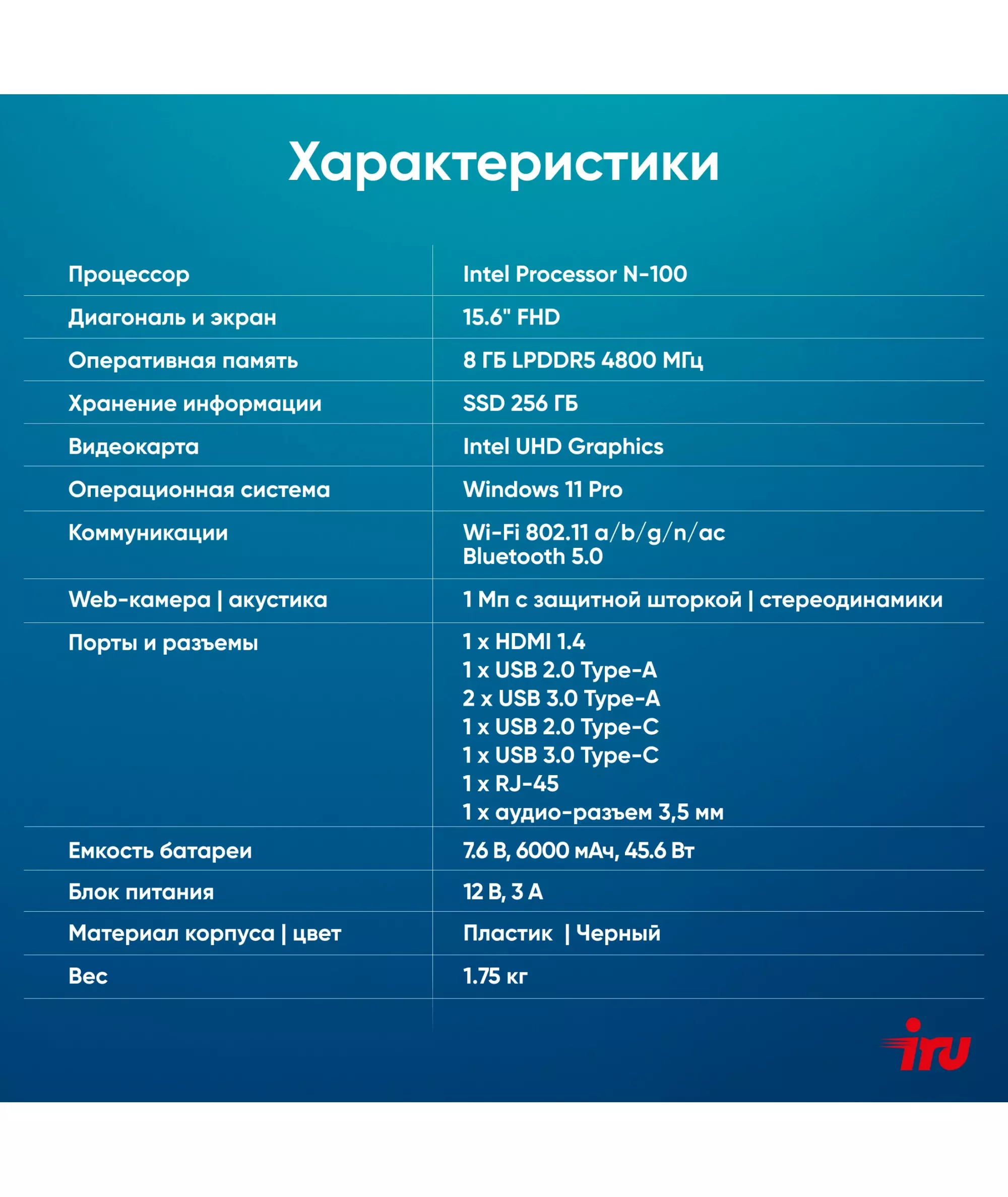 Ноутбук iRU Planio 15ING N100 8Gb SSD256Gb Intel UHD Graphics 15.6" IPS FHD (1920x1080) Windows 11 Pro Multi Language 64 black WiFi BT Cam 6000mAh [2059104]