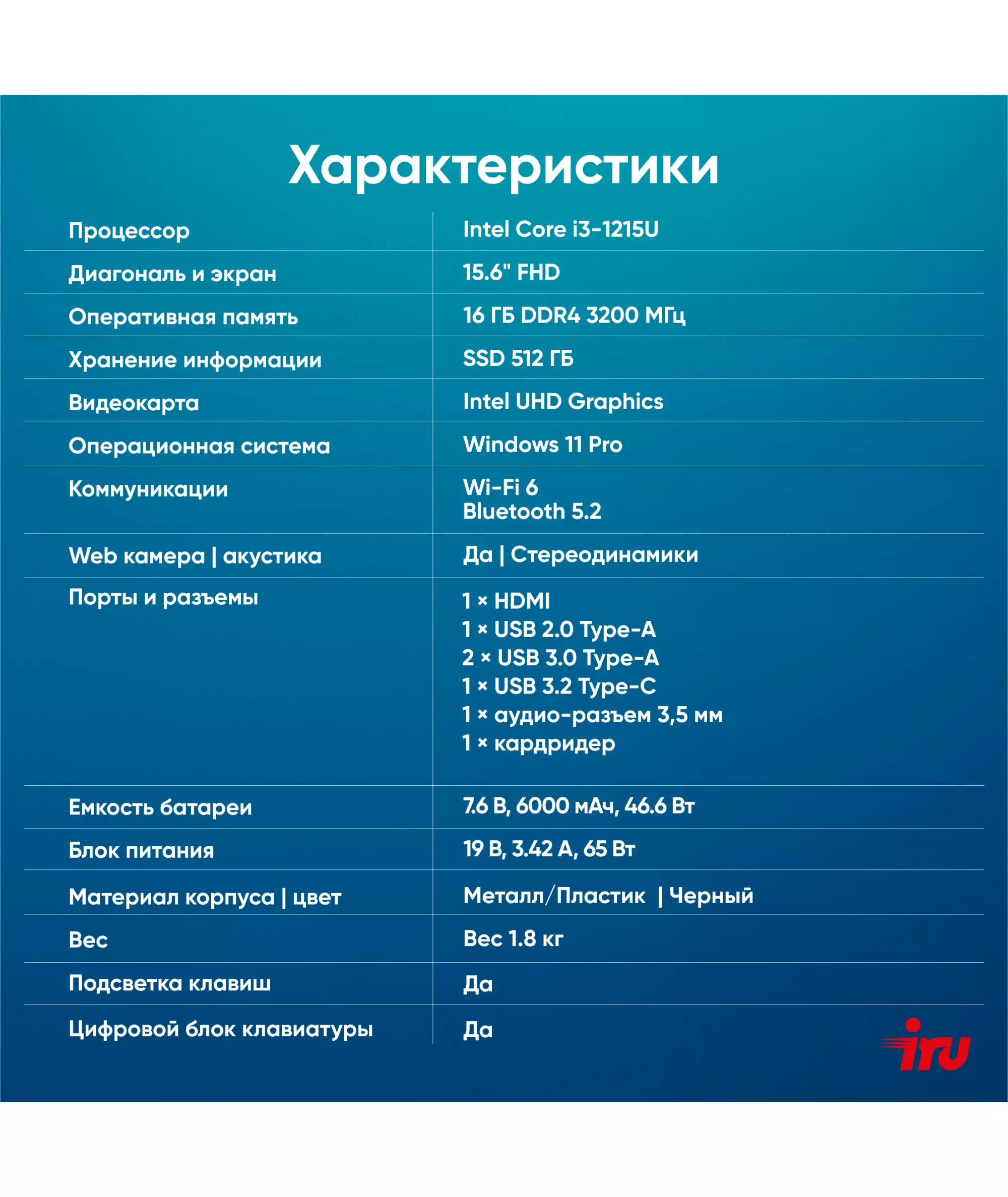 | Видеокарта | Intel UHD Graphics |