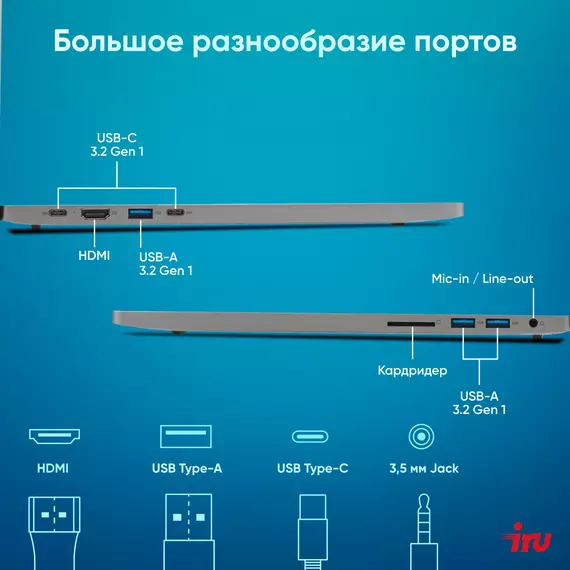 Ноутбук iRU Strato 16ALMR Core i5 12450H 16Gb SSD512Gb Intel UHD Graphics 16" IPS FHD (1920x1200) Windows 11 Pro grey WiFi BT Cam 5400mAh [2142318]