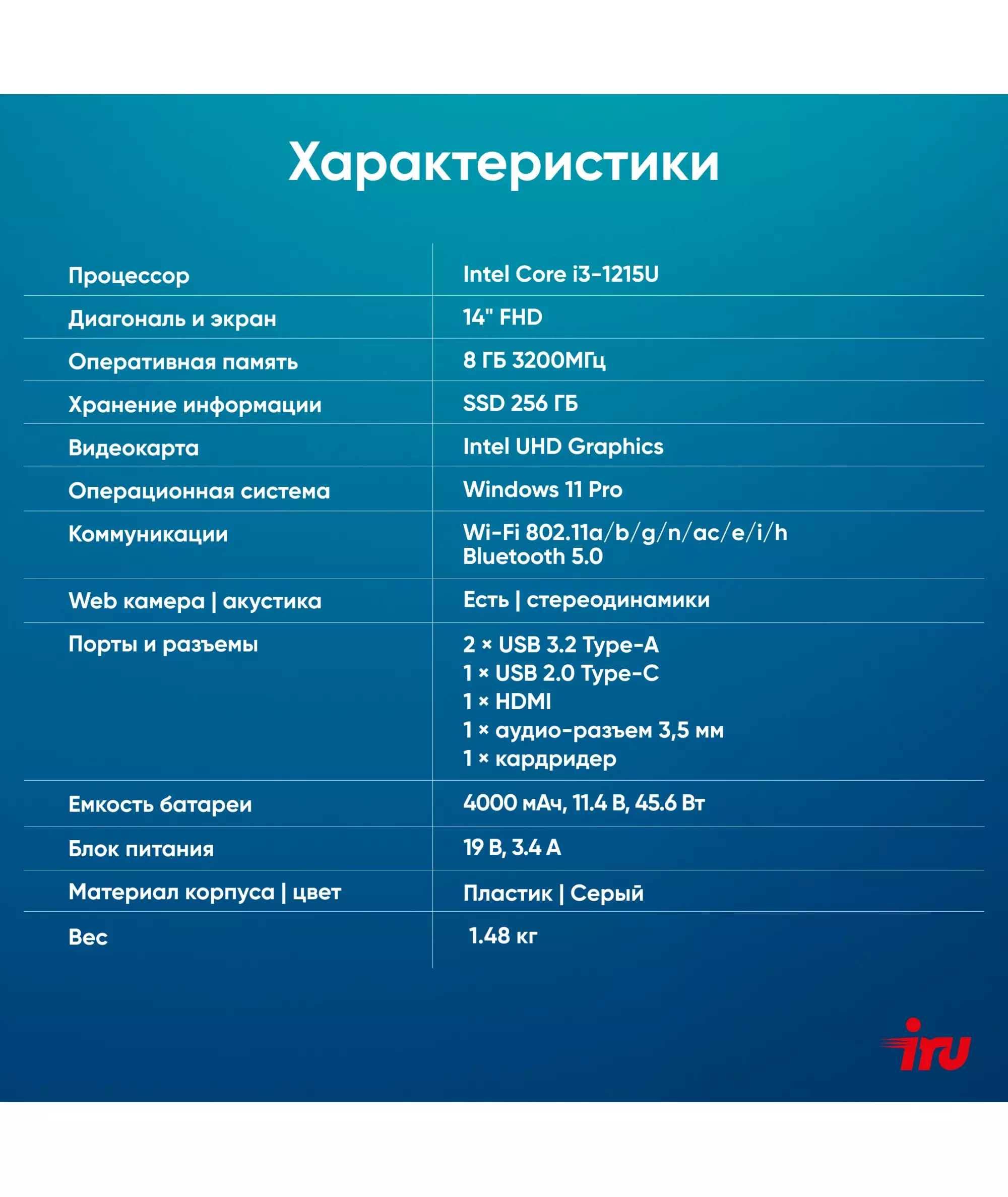 | Видеокарта | Intel UHD Graphics |