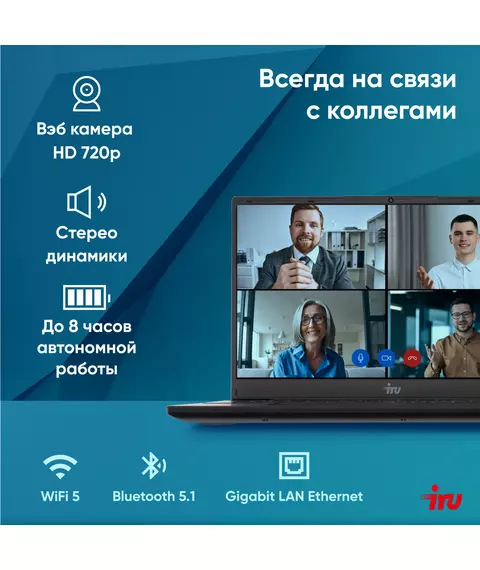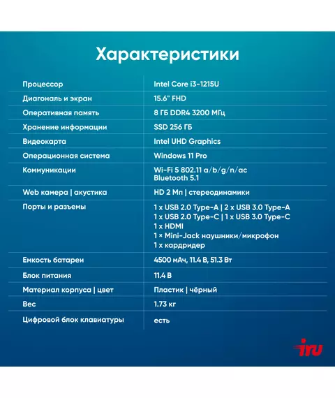 Ноутбук iRU Tactio 15ALG Core i3 1215U 8Gb SSD256Gb Intel UHD Graphics 15.6" IPS FHD (1920x1080) Windows 11 Professional 64 black WiFi BT Cam 4500mAh [2019263]