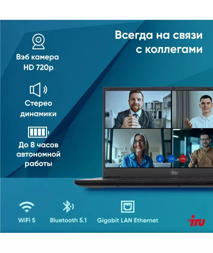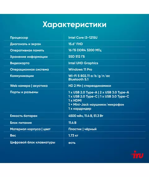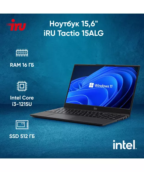 Ноутбук iRU Tactio 15ALG Core i3 1215U 16Gb SSD512Gb Intel UHD Graphics 15.6" IPS FHD (1920x1080) Windows 11 Professional 64 black WiFi BT Cam 4500mAh [2019268]