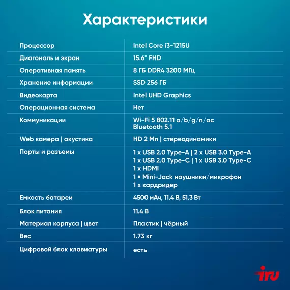 | Процессор | Intel Core i3 1215U 1.2ГГц |