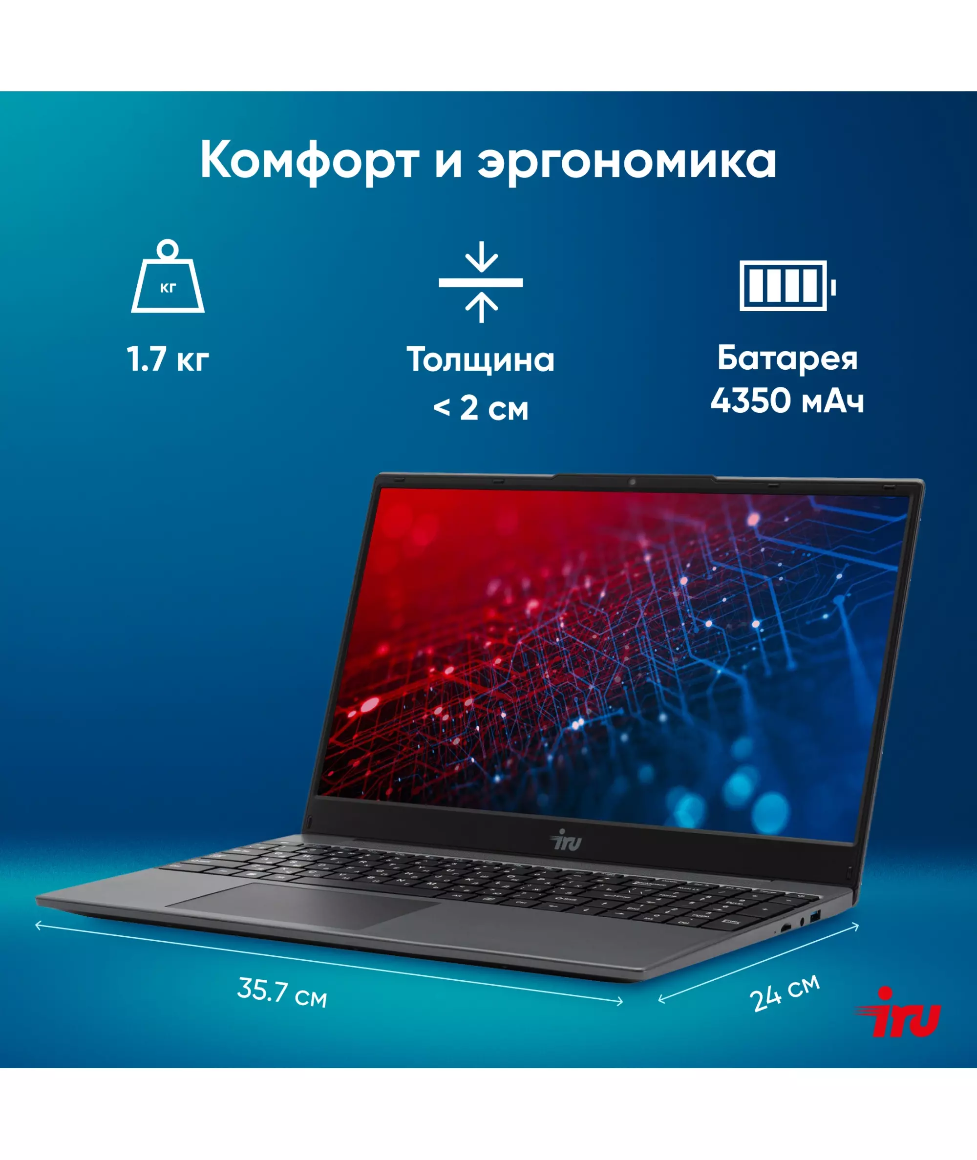 Ноутбук iRU Tactio 15PHC Ryzen 5 7430U 16Gb SSD512Gb AMD Radeon Graphics 15.6" IPS FHD (1920x1080) Windows 11 Pro Multi Language black WiFi BT Cam [2046012]
