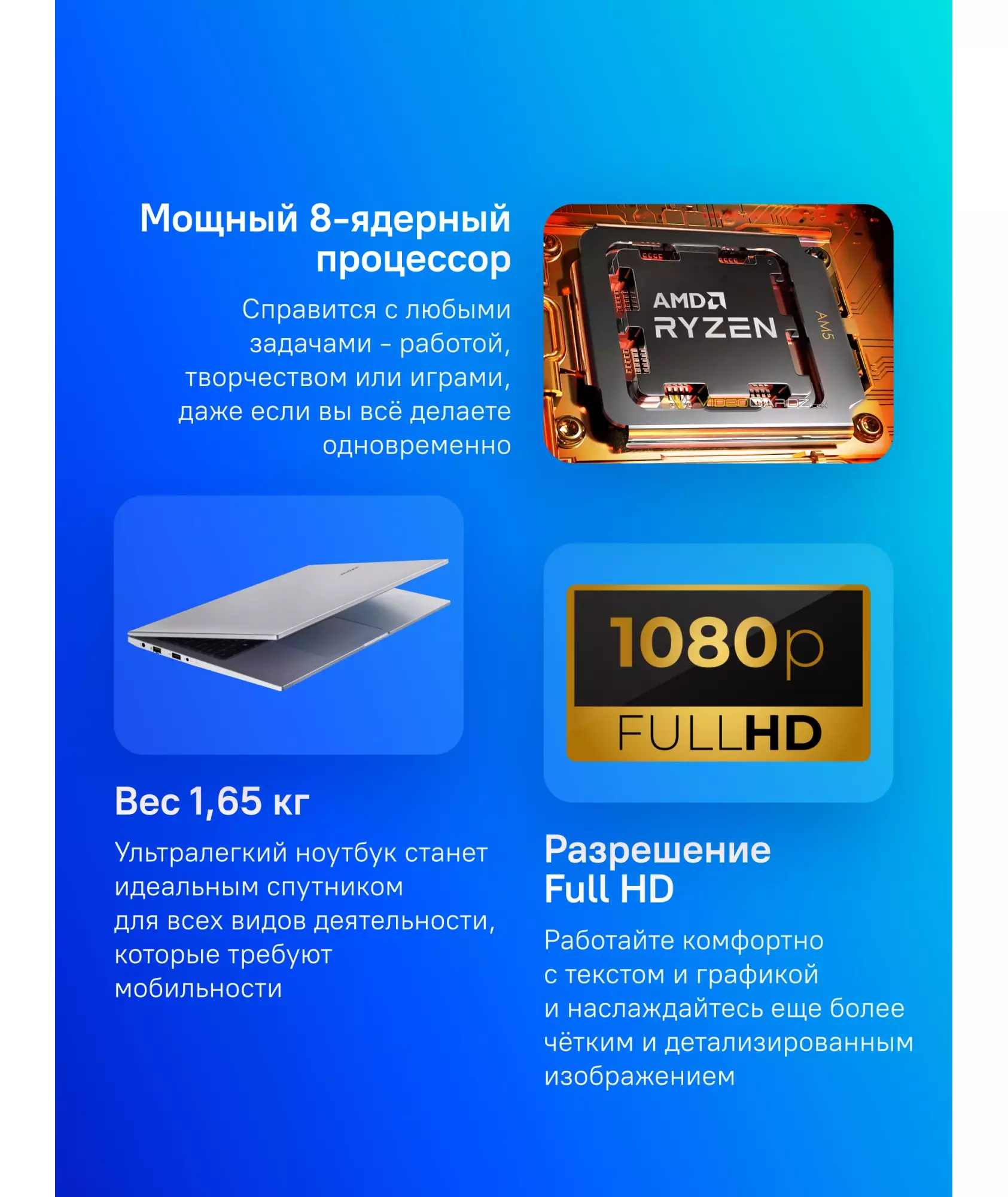 Ноутбук Maibenben M557 Ryzen 7 5825U 16Gb SSD512Gb AMD Radeon Graphics 15.6" IPS FHD (1920x1080) Linux silver WiFi BT Cam 4278mAh [M5571SF0LSRE1]