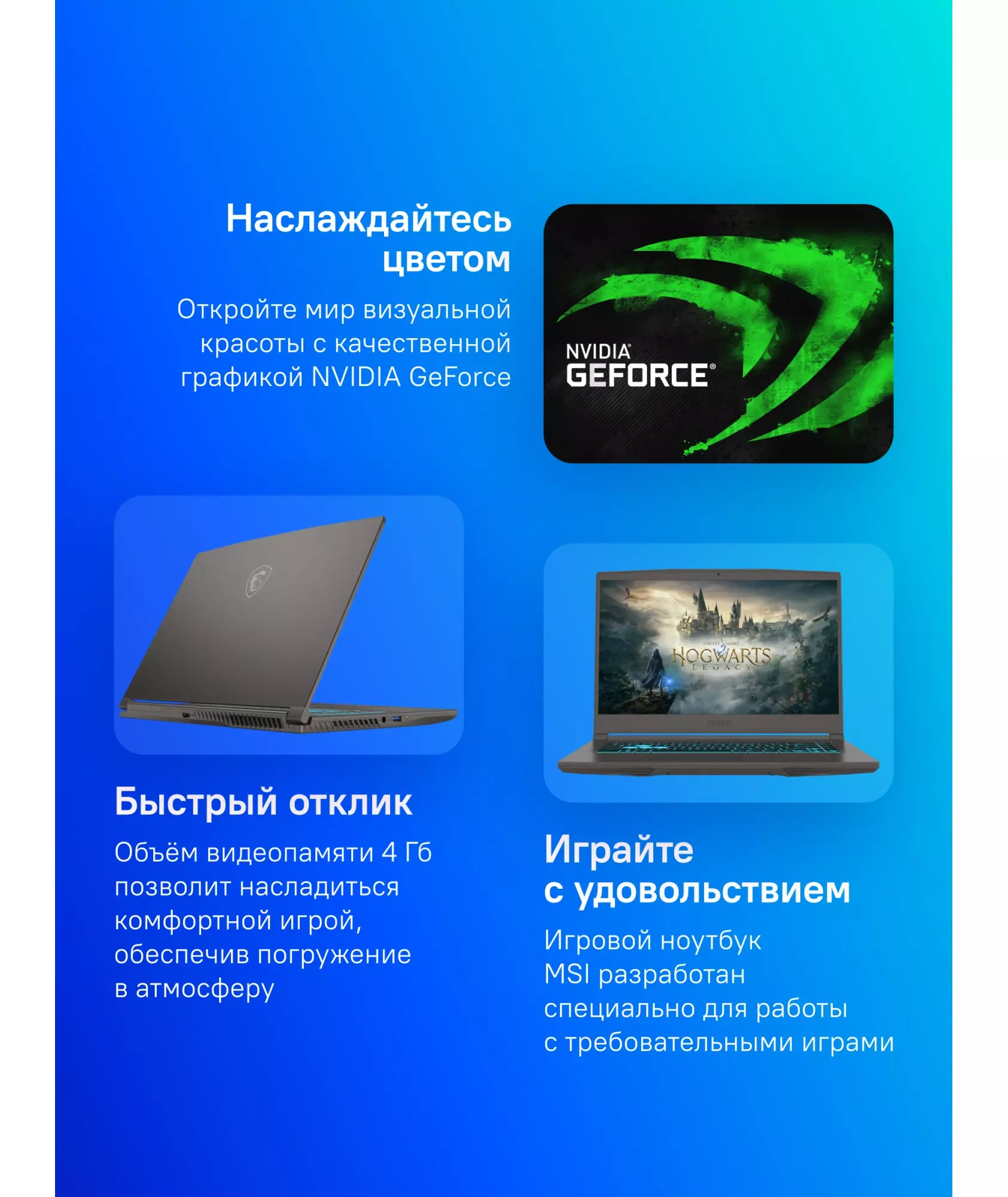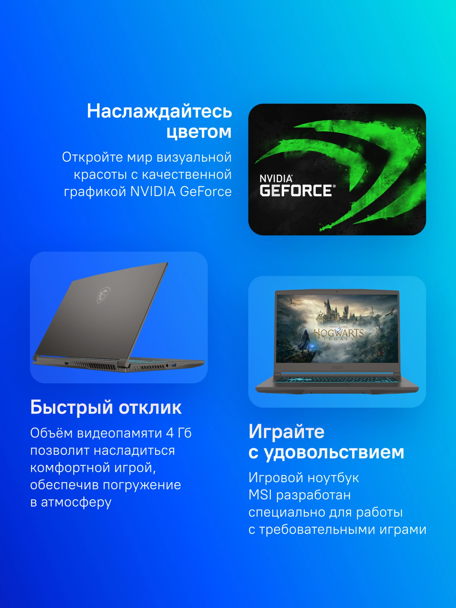 Ноутбук MSI Thin 15 B12UCX-2633XRU Core i5 12450H 16Gb SSD512Gb NVIDIA GeForce RTX 2050 4Gb 15.6" IPS FHD (1920x1080) FreeDOS grey WiFi BT Cam [9S7-16R831-2633]