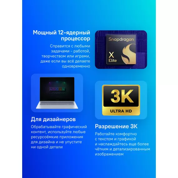 | Процессор | Qualcomm Snapdragon X Elite X1E-80-100 3.4ГГц |