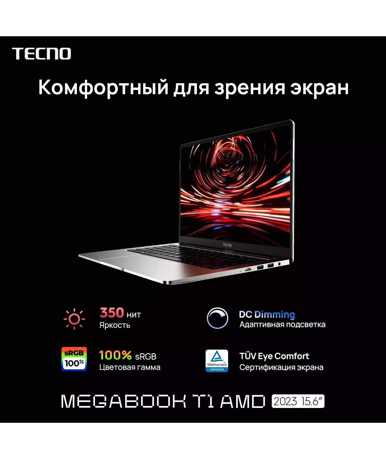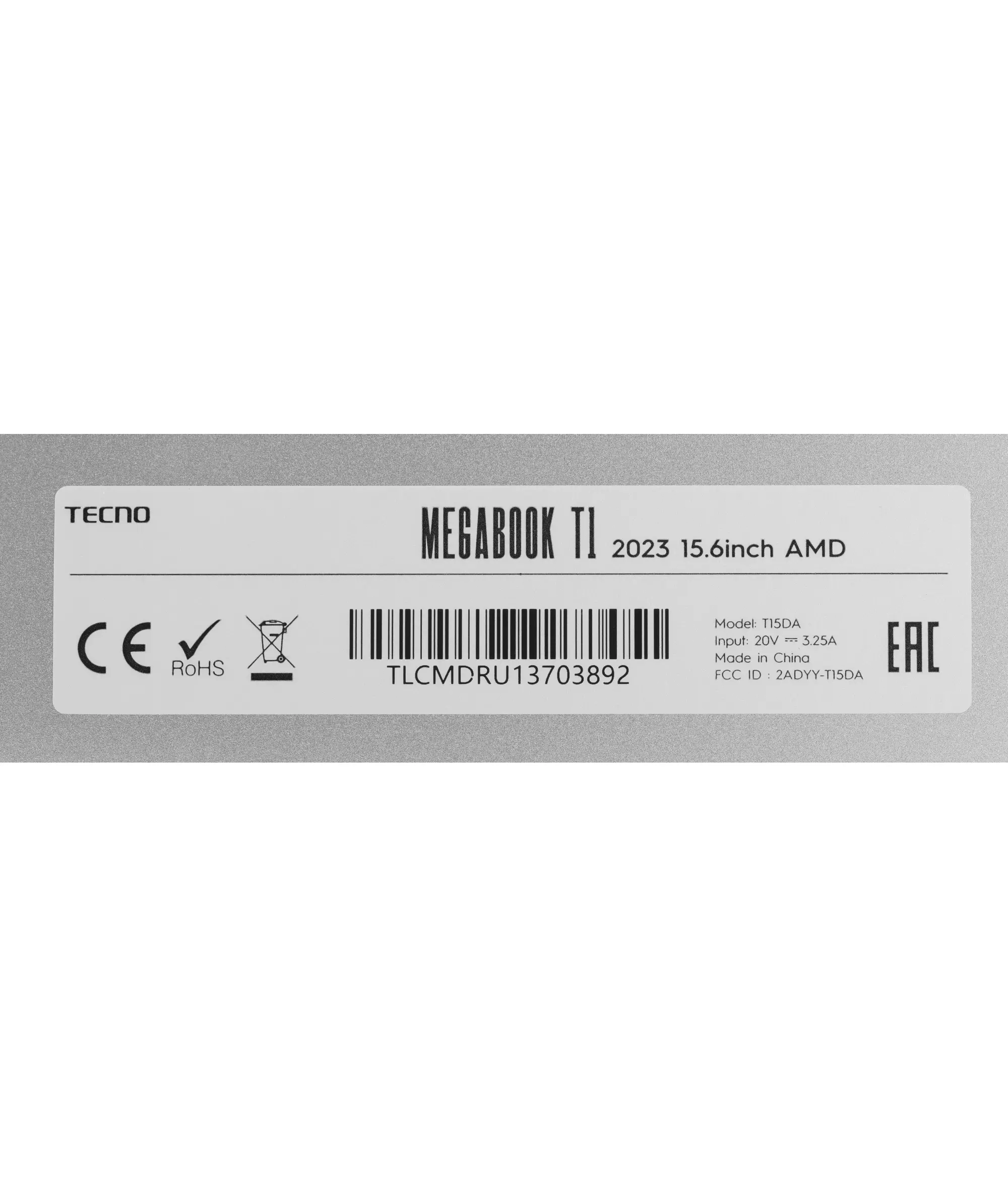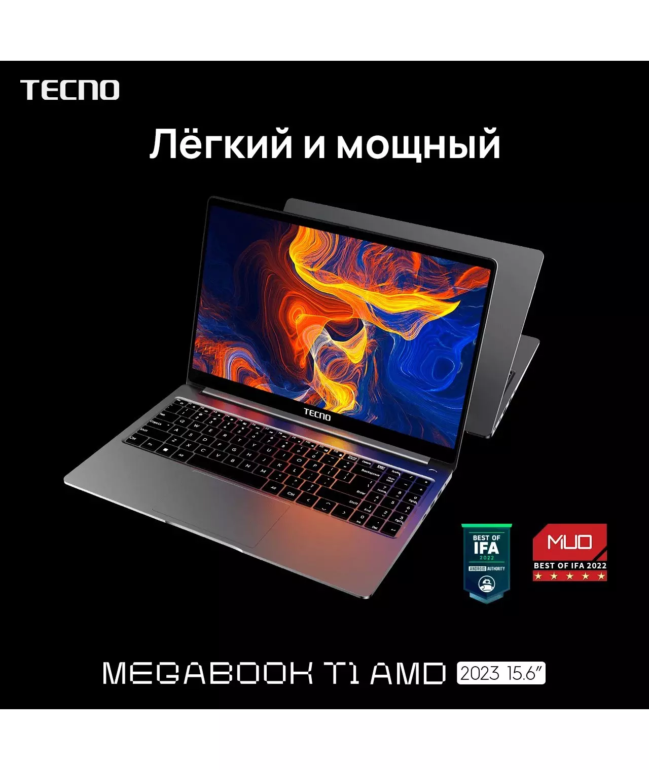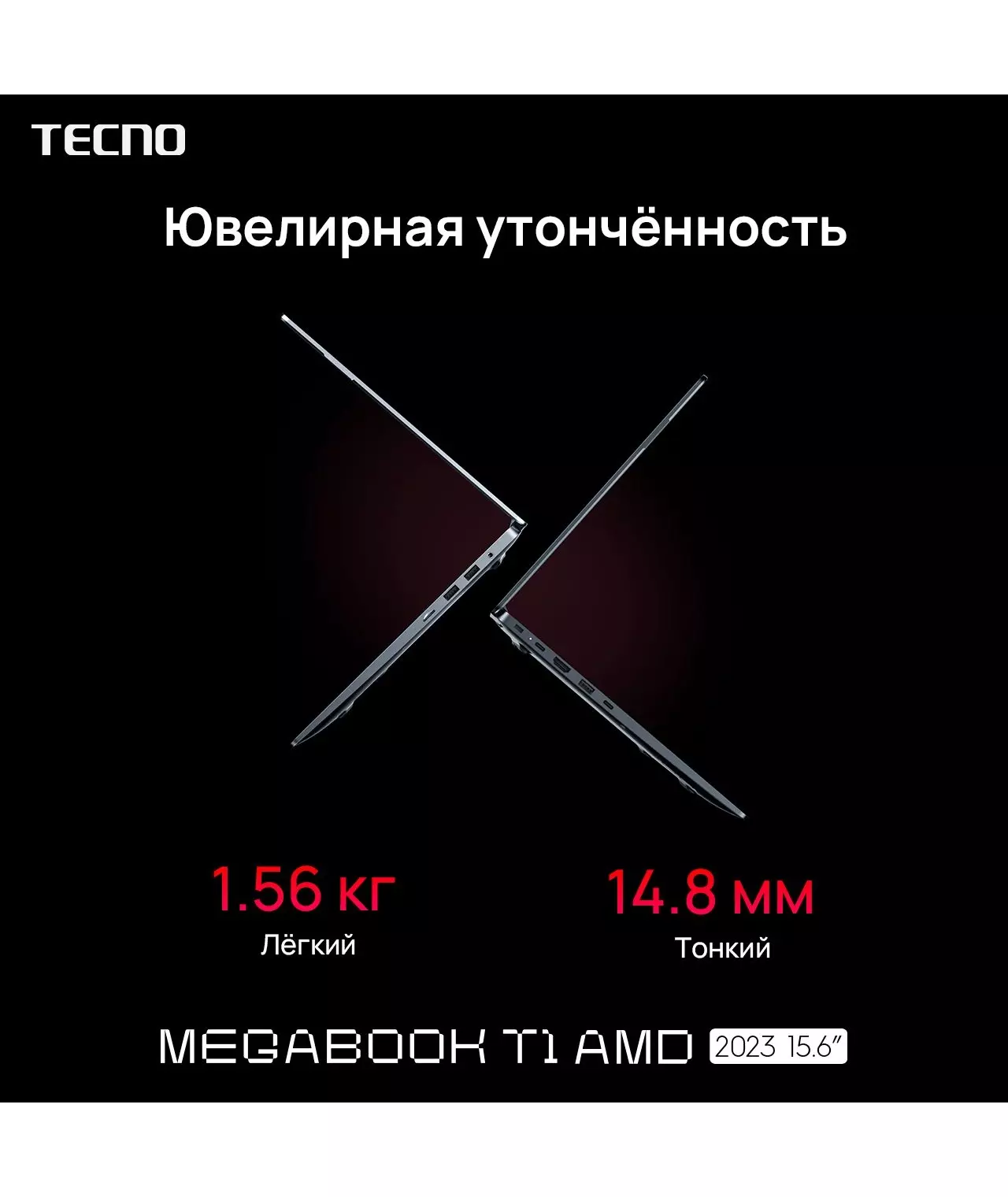 Ноутбук Tecno MegaBook T1 Ryzen 5 5560U 16Gb SSD512Gb AMD Radeon Graphics 15.6" IPS FHD (1920x1080) Windows 11 Home 64 grey WiFi BT Cam 6060mAh [71003300136]