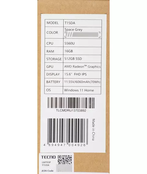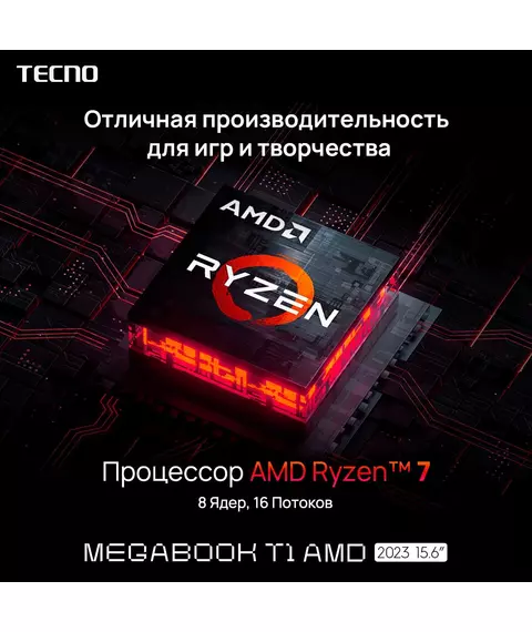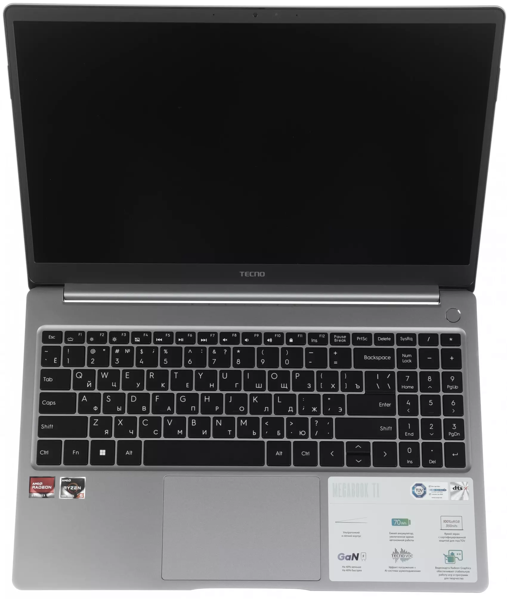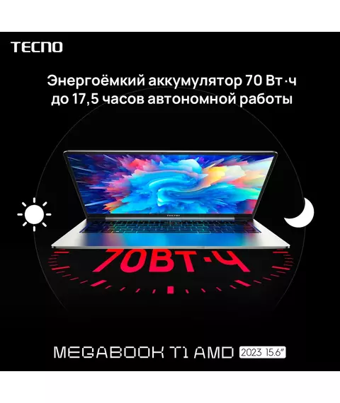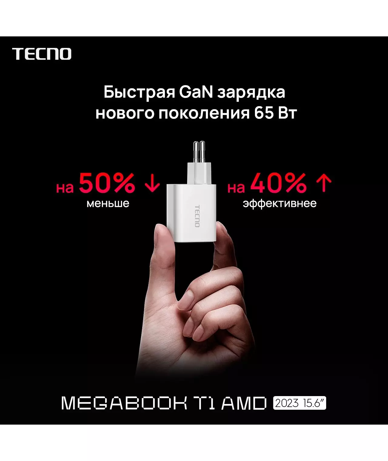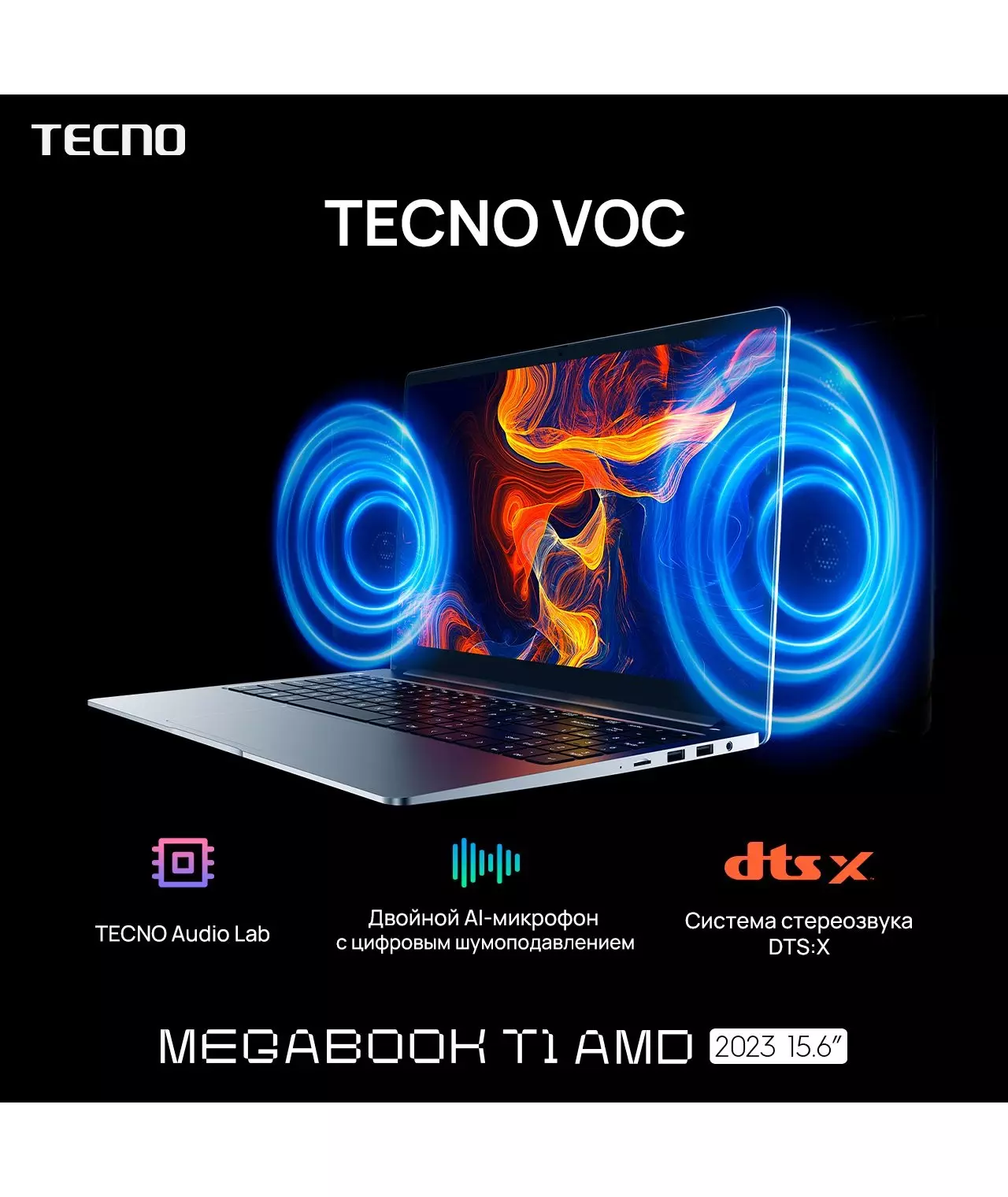 Ноутбук Tecno MegaBook T1 Ryzen 5 5560U 16Gb SSD512Gb AMD Radeon Graphics 15.6" IPS FHD (1920x1080) Windows 11 Home 64 grey WiFi BT Cam 6060mAh [71003300136]
