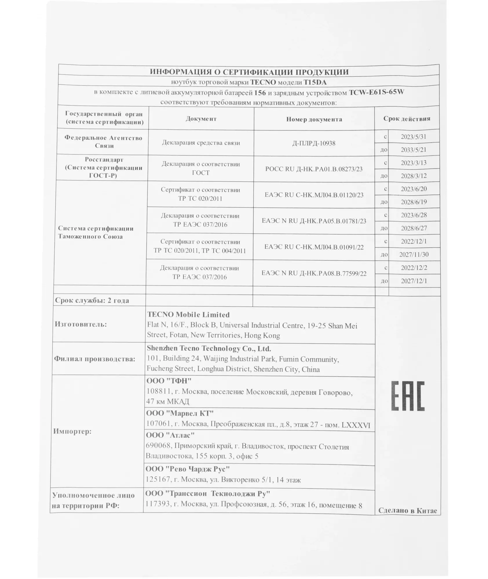 Наличие товара Tecno MegaBook T1 [71003300136]