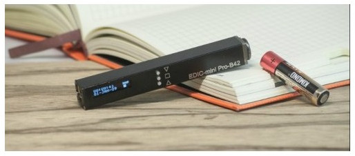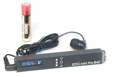 - EDIC-mini PRO B42 — мини диктофон, у которого почти весь функционал доступен без использования компьютера. Вы можете менять настройки и сохранять их в профили (до 8) непосредственно с диктофона, используя кнопки и OLED экран. Для удобства включения/выключения записи есть отдельный переключатель. Сделанные записи можно прослушивать через наушник, не выгружая их в компьютер. 16-разрядный кодек обеспечивает повышенную разборчивость материала, а мощного аккумулятора хватит до 100 часов непрерывной записи.