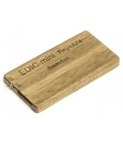 Цифровой диктофон Edic-mini Tiny+ А74-150HQ дерево, размер 4.5*29*57мм, вес 7г, автономность до 30ч, аккумулятор