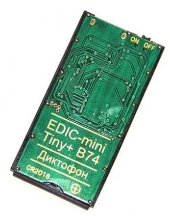 Цифровой диктофон Edic-mini Tiny+ B74-150HQ Стеклотекстолит, размер 3*28*57мм, вес 7г, автономность до 30ч, батарейка
