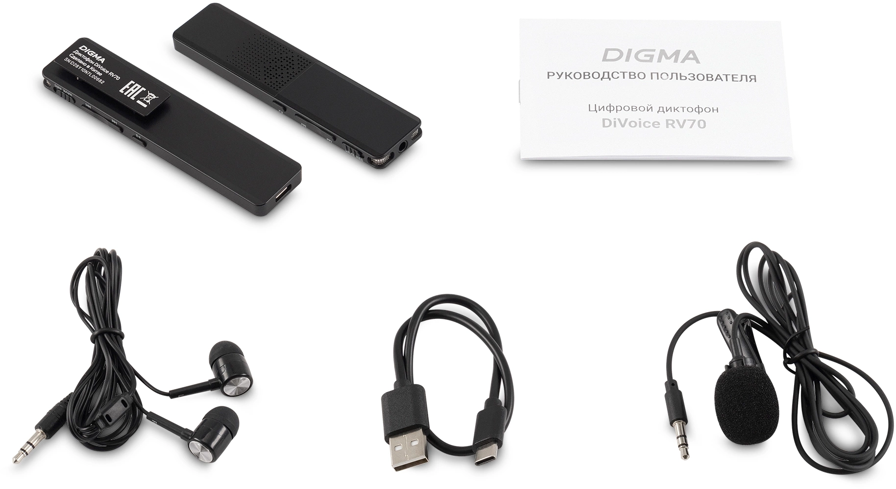 Цифровой диктофон Digma DiVoice RV70 32Gb черный [RV70B]