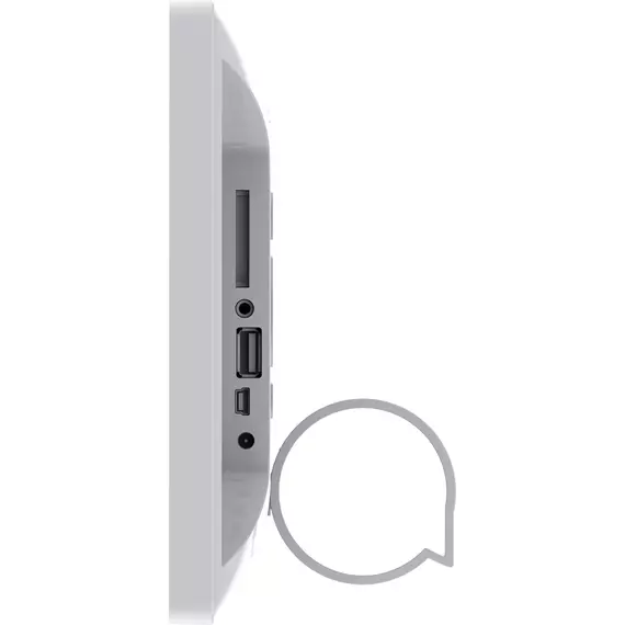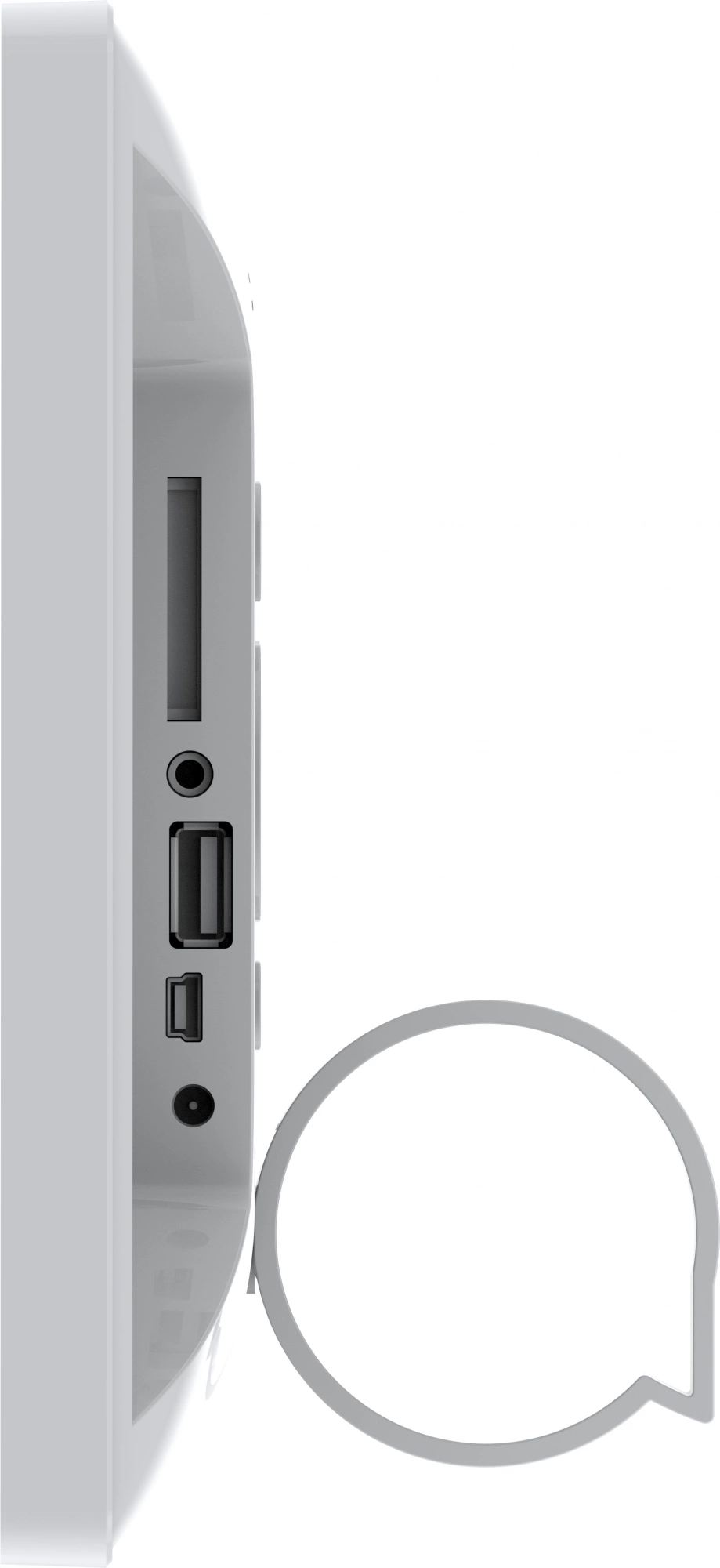 Цифровая рамка выполнена в минималистичном дизайне белого цвета, что позволяет легко вписать её в любой интерьер. По желанию рамка прикрепляется к стене.